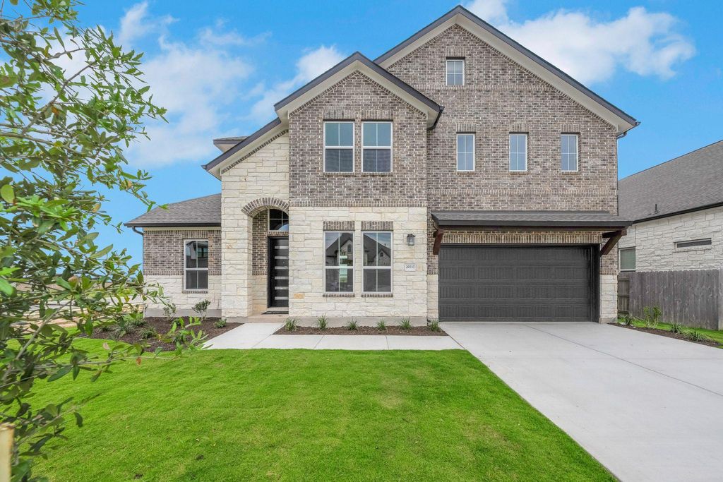 From the GFO Home grand Presidential Series, this stunning 3,410 sf Two-Story new construction home is our striking Harrison Floor Plan offering 5 Bedrooms, 4 Bathrooms, and a spacious 2-Car Garage all on a corner lot in the highly desired Master-Planned community of Blackhawk in Pflugerville! This home also includes highlights like a Private Study on the main floor, a Guest Suite with full ensuite Bathroom, an Open Concept Family Room with soaring 2-story Vaulted Ceilings, and a Gourmet Chef's Kitchen featuring a large Center Island, Walk-in Pantry, and attached Breakfast Room. Enjoy a spacious Covered Patio leading out to the Private Backyard, as well as a luxurious Primary Suite and Spa-Inspired Primary Bathroom with a Free-Standing Tub, and Oversized Walk-In Closet. Upstairs you'll find the Game room for endless fun, as well as 3 additional Bedrooms and 2 more full Bathrooms. Experience high-end living at its finest with the Harrison floor plan in beautiful Pflugerville, TX. Located in Prime Location near major tech employers off Toll 130 & 45 and near convenient and major shopping like the Stone Hill Shopping Center.