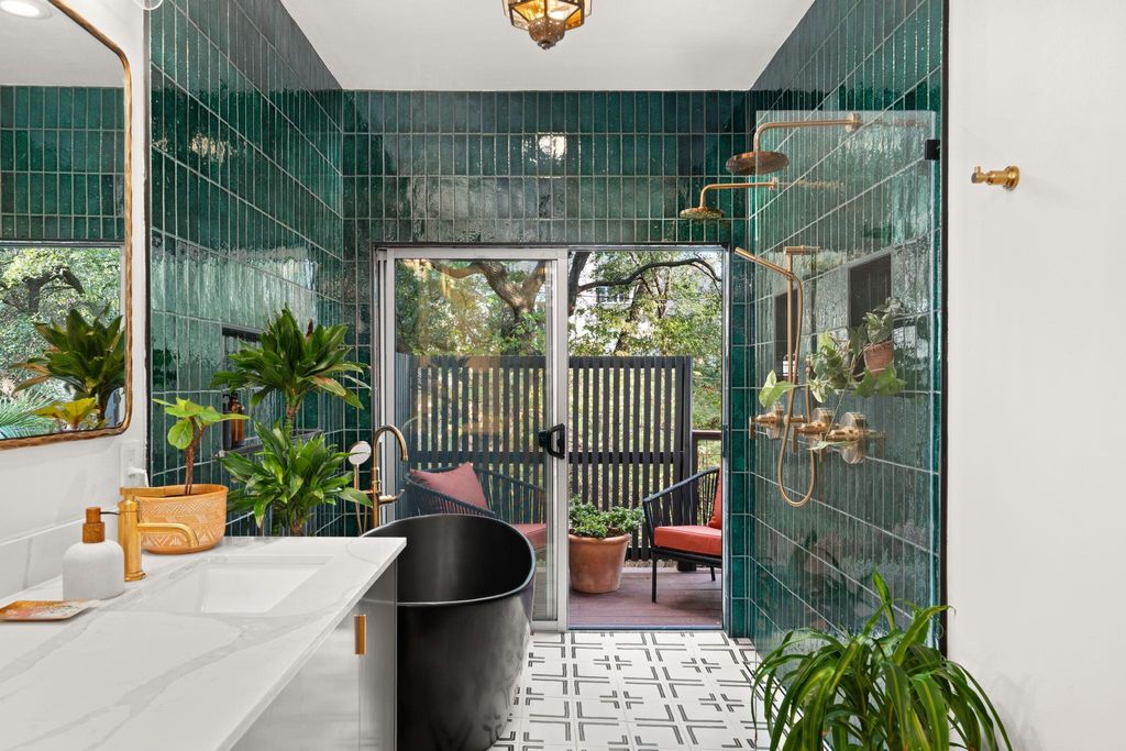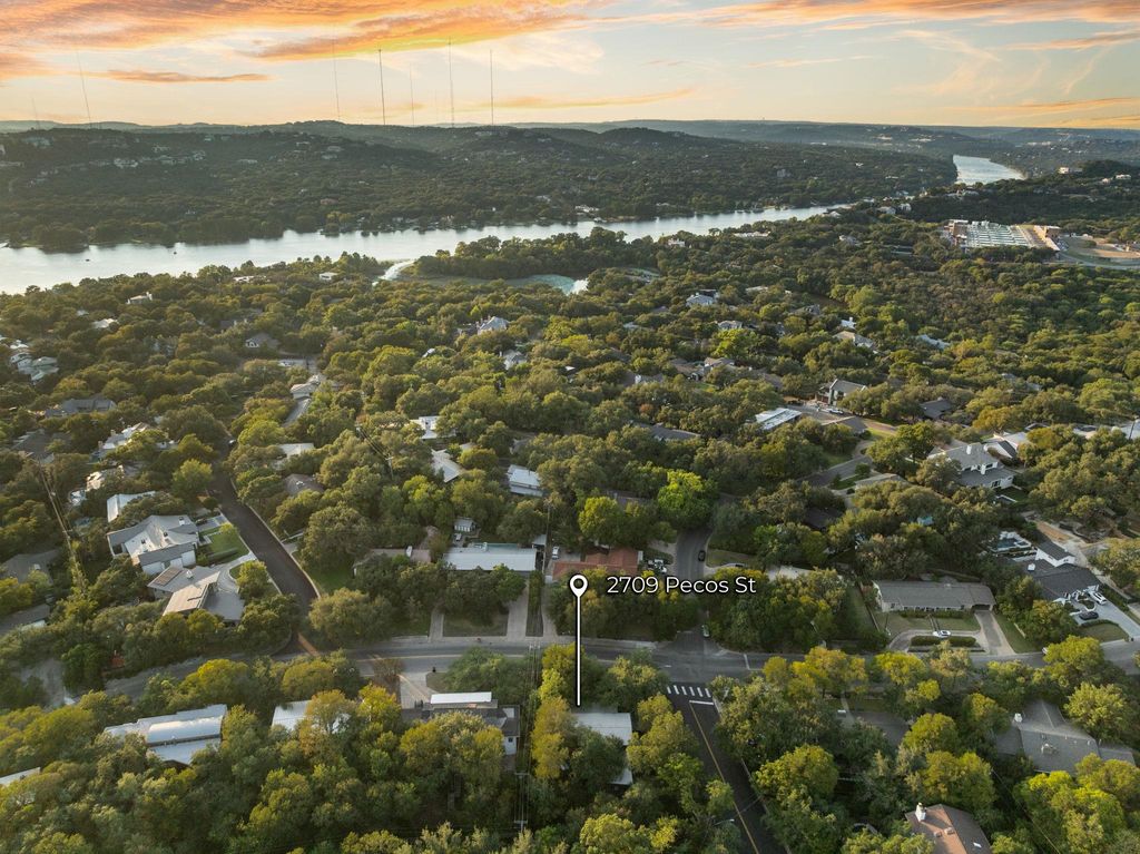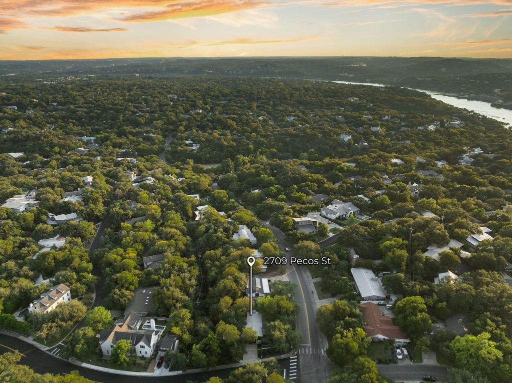 A Sophisticated Tarrytown Treehouse Retreat Surrounded by 14 graceful live oaks, this split-level mid-century modern residence feels like a private treehouse in the heart of Tarrytown. With timeless appeal and a serene connection to nature, it offers a retreat that feels worlds away, yet only minutes from Casis Elementary, Casis Village, Lake Austin, and downtown. Light-filled rooms feature white oak floors and custom built-ins. Walls of glass frame the pool and waterfall privacy wall, blurring the line between indoors and out. The open dining area flows from the elegant entry to the kitchen and living spaces. The kitchen balances form and function with quartz counters, custom grain-matched Cherrywood cabinetry, and premium Thermador, Jenn-Air, KitchenAid, and Whirlpool appliances. The family room is a curated retreat with deep green walls, warm wood floors, a striking chandelier, and a gas fireplace clad in Clay Imports tile. A wall of windows immerses you in treetop views, while 300 sq.ft. of deck extends the living space outdoors. The flexible layout includes multiple living areas and two primary suites in separate wings. The lower-level primary cantilevers over the backyard for a true treehouse feel, featuring a spa-like bath with emerald tile, quartz counters, gold fixtures, and a sculptural black soaking tub framed by the trees. The upper-level suite includes its own ensuite and balcony, while additional bedrooms offer walk-in closets and a modern bath with quartz counters and designer tile. Set on a 0.37-acre corner lot, the property is designed for leisure with multiple decks shaded by live oaks, a putting green, seven sliding doors for seamless indoor-outdoor flow, and a sparkling pool with cascading waterfall. A two-car garage with Tesla charger and potential for an ADU add versatility. This Tarrytown residence is more than a home"”it's a lifestyle of sophistication, timeless design, and connection to nature.