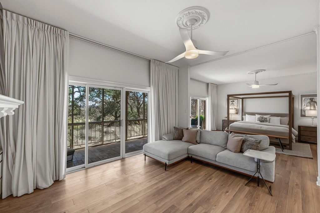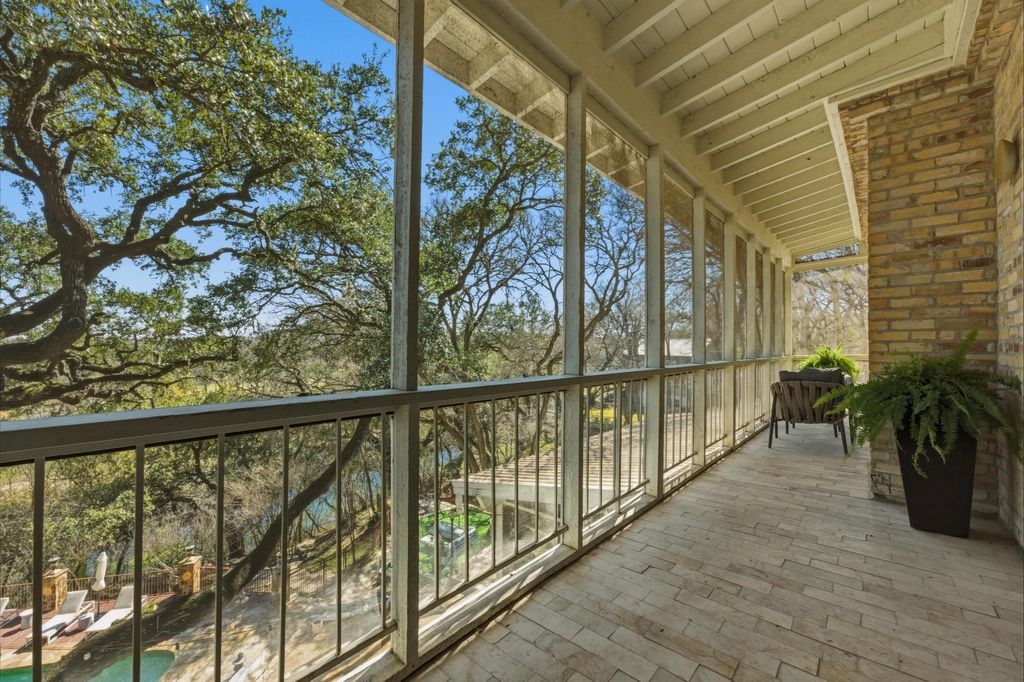 A rare custom estate overlooking Onion Creek and the Onion Creek Golf Course beyond, this exceptional property offers beautiful creek views and direct access for kayaking or tubing. Elevated on a high terrace lot of nearly 1/3 acre and surrounded by towering, century-old oak trees, the home sits above the creek and enjoys remarkable privacy, sweeping tree-canopy vistas, and a peaceful setting that feels worlds away while remaining in the heart of South Austin. From inside the home and across expansive verandas, you overlook the pool and backyard, creating a private, resort-like atmosphere where water, trees, and open sky frame everyday living. Designed for effortless indoor-outdoor flow, most rooms capture backyard and canopy views, ideal for peaceful mornings and memorable gatherings. The spacious open floor plan features travertine floors, refined architectural details, a kitchen with an oversized island, spacious pantry, and light-filled living spaces. All bedrooms are en suite, highlighted by a remarkable primary suite that lives like a private apartment with its own living area, fireplace, kitchenette, office space, dual baths and closets, soaking tub, new frameless shower, and porch access. A separate 1/1 guest apartment near the pool, included in the advertised square footage, provides ideal accommodations for extended family, guests, or a private studio. Located on coveted La Costa Drive within an established neighborhood known for mature trees and pride of ownership, the property enjoys seamless access to Downtown Austin, I-35 corridor, and ABIA offering a rare balance of executive convenience and tranquil retreat for those who value effortless travel, vibrant city life, and a one-of-a-kind private setting.