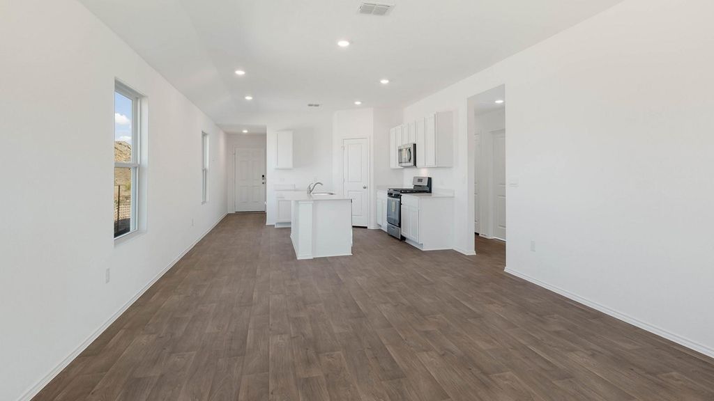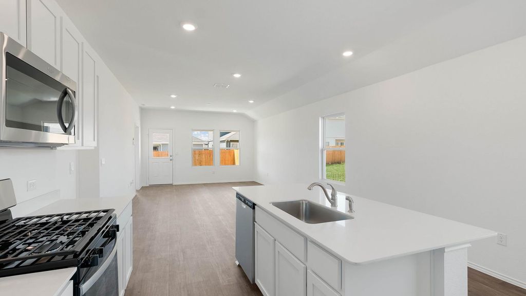 UNDER CONSTRUCTION - EST COMPLETION NOW!!!!!!!!!!!!!!!!!!!!! Photos are representative of plan and may vary as built. Check out the Amber floor plan featured in our Durango community in Mustang Ridge, TX. The Amber is a 1,276 sq. ft. 3 bedroom, 2 bathroom single-story home. Entering the home you step into the open foyer with access to the laundry room. Walking further into the home you are greeted by the spacious kitchen overlooking the dining area and living room. The kitchen features quartz countertops, stainless steel appliances, recessed lighting and a kitchen island. The private main bedroom, bedroom 1, is located off the living room and includes an ensuite with a huge walk-in closet and walk-in shower. You will find the 2 additional bedrooms and full bathroom just off the kitchen. This home comes included with a professionally designed landscape package and an irrigation system as well as our America's Smart Home® package that offers devices such as the Qolsys IQ Panel, Video Doorbell, Alarm.com app, Honeywell Thermostat, Deako Smart Light Switch, Kwikset Smart lock, and more.