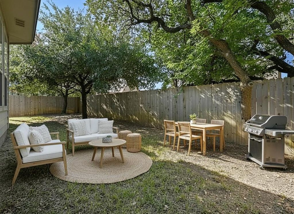 Charming 4-bedroom, 2.5-bathroom residence located in North Austin. This home boasts soaring ceilings, an open-concept kitchen, two dining areas, and two distinct living spaces, offering versatile living and entertaining options. The primary bedroom is conveniently situated on the main floor and features a spa-like ensuite with a shower, garden tub, dual vanity, and a walk-in closet. Additional highlights include proximity to Walnut Creek Metropolitan Park, The Domain shopping and dining district, and H-E-B, ensuring easy access to outdoor recreation and everyday conveniences. This property combines comfortable family living with modern design and a prime North Austin location.