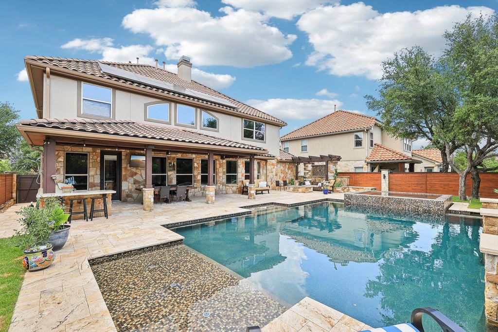Now one of the lowest-priced 4,000+ sq ft homes with a pool behind a gate in Steiner Ranch, this spacious and thoughtfully updated home offers plenty of room to relax, entertain, and enjoy the privacy of a greenbelt lot. Imagine starting your day with coffee by the pool, surrounded by quiet Hill Country views"”this home makes it easy to enjoy that kind of everyday comfort. With over 4,000 square feet, the layout is open and bright, with high ceilings, large windows, and modern finishes throughout. The remodeled kitchen is a true centerpiece, perfect for both daily living and hosting. The main-level primary suite is tucked away for privacy and features a spa-like bath and generous closet space. Upstairs and down, you'll find flexible spaces for guests, home offices, or hobbies. Out back, the yard feels like a private retreat with a sparkling pool, spa, covered patio, and easy-care landscaping that backs to a peaceful greenbelt. All within the prestigious, gated Steiner Ranch community of Savannah Point, with access to top-rated schools and resort-style amenities including pools, parks, tennis courts, miles of trails, and private Lake Austin access at the Lake Club. Don't miss your chance to own one of Steiner's best values in a truly unbeatable location!