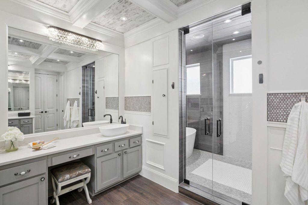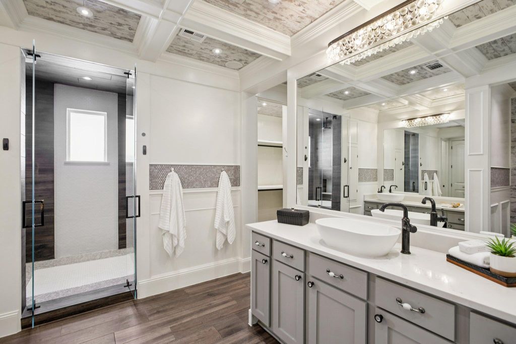 INTERIOR | Beamed Ceilings, Bookcases, Breakfast Bar, Ceiling Fan(s), Coffered Ceiling(s), Double Vanity, Entrance Foyer, Granite Counters, High Ceilings, Kitchen Island, Master Downstairs, Open Floorplan, Pantry, Recessed Lighting, Soaking Tub, Walk-In Closet(s), Wired for Sound |