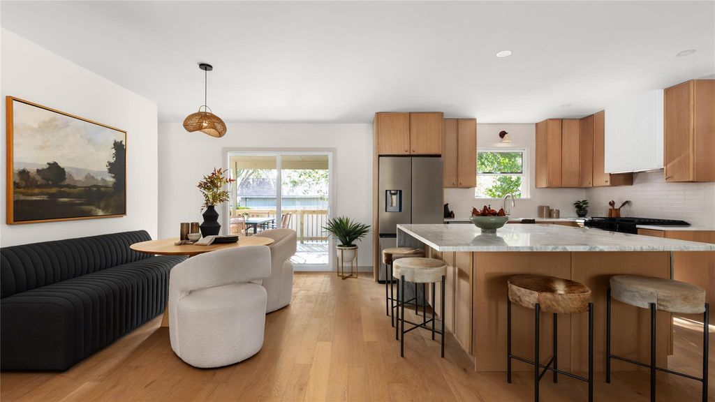 Fully permitted revival in Windsor Park. Taken down to the studs, this redesigned home is everything you need and more. The home features an abundance of natural light, a new vaulted living area ceiling, an open concept to the kitchen, dining, and bar areas. The gorgeous kitchen design features micro-shaker white oak cabinetry, quartz/dolomite countertops, and a custom fluted range hood. Engineered hardwood floors and carefully selected tiles throughout. Spacious primary bedroom w/ beautiful primary bathroom ensuite and walk-in closet. Rare 2-car garage and all new plumbing, electrical, HVAC, and water heater. Close to Mueller, Dell Children's, Downtown Austin, and the University of Texas at Austin.