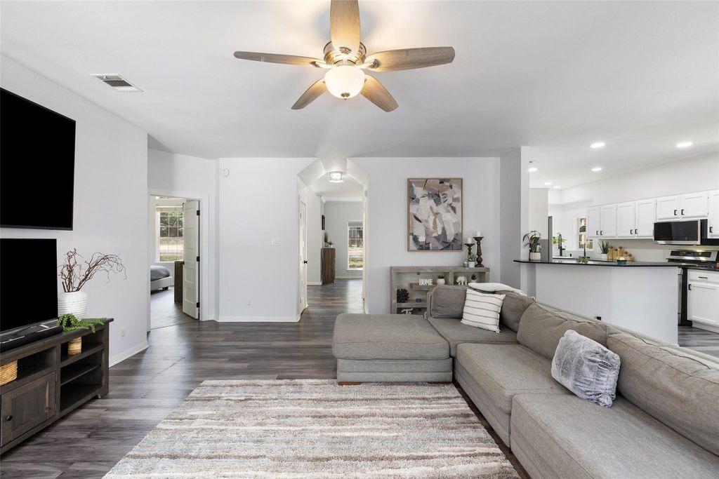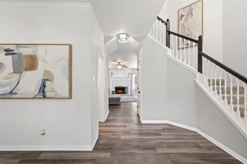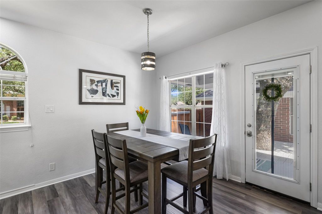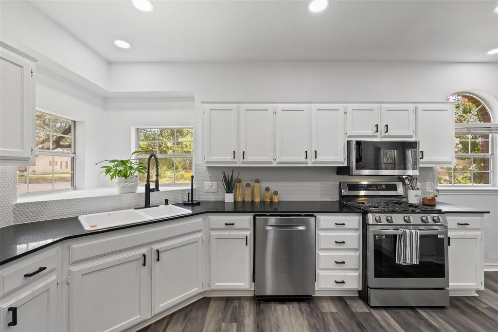 *Our preferred lender is offering a 1-1 buydown* Nestled in the sought-after Canyon Creek neighborhood, this beautifully remodeled 4-bedroom, 2.5-bath home features LVP flooring throughout the main floor, updated fixtures, fresh paint & eye-catching accent walls, and fully renovated bathrooms and kitchen. Upon entry, you are greeted by soaring ceilings in the foyer. An alcove tucked just off the entryway is perfect for a quiet home office space. Through the hallway, the main living area opens up into a beautiful open concept space, ideal for entertaining friends and family. The fireplace is highlighted by an accent wall and framed by windows overlooking the backyard. The kitchen boasts recently installed stainless steel appliances, white painted cabinets with updated hardware, and an updated tile backsplash. Stepping outside, the backyard is an oasis for outdoor living and entertaining, equipped with your own putting green and recently installed turf for easy maintenance. The covered breezeway to the garage creates the perfect shaded patio space for warm summer days, while the extended deck with an outdoor TV offers the ideal setting for game days, backyard barbecues, and al fresco dining. Back inside, the main floor primary bedroom is a private retreat featuring high ceilings, a beautiful accent wall, abundant natural light, a walk-in closet, and fully renovated ensuite bath. Upstairs, a spacious flex space is perfect for a media or play room and the three additional bedrooms share a recently renovated bathroom. Beyond your front door, the Canyon Creek pool and amenity center is located within walking distance. Residents of Canyon Creek also enjoy access to tennis and basketball courts, a community park, and miles of scenic hiking and biking trails. All of this, just minutes from top-rated schools, Trailhead Park, and the stunning natural beauty of the Balcones Canyonlands Preserve, makes this home a true gem in one of Northwest Austin's most desirable communities.