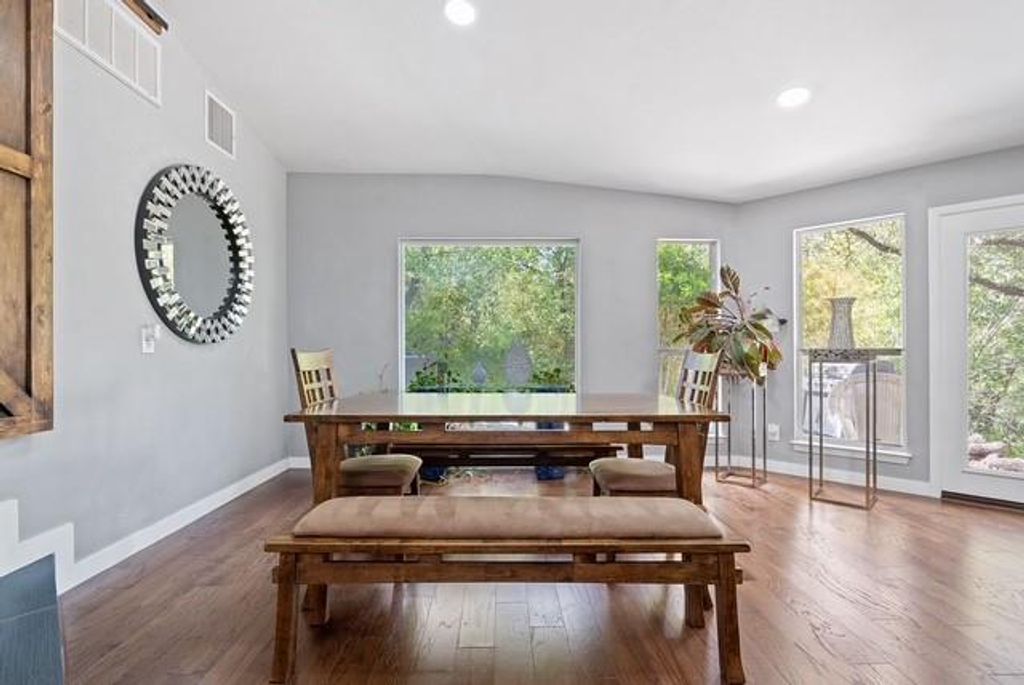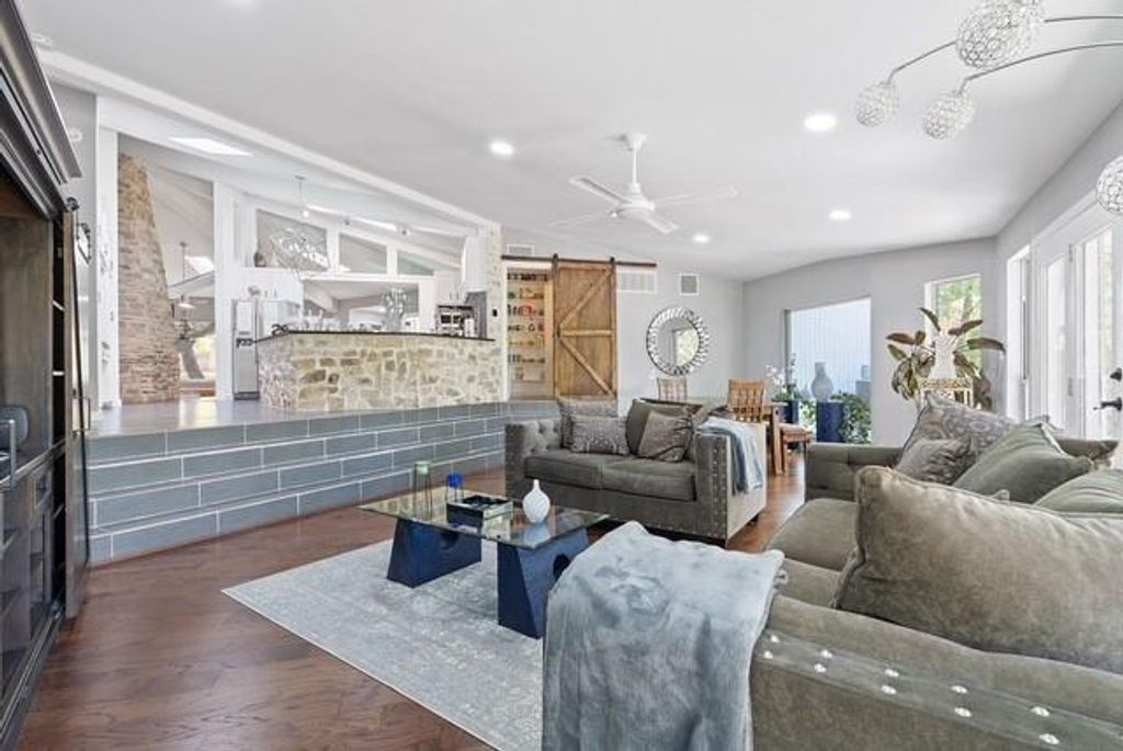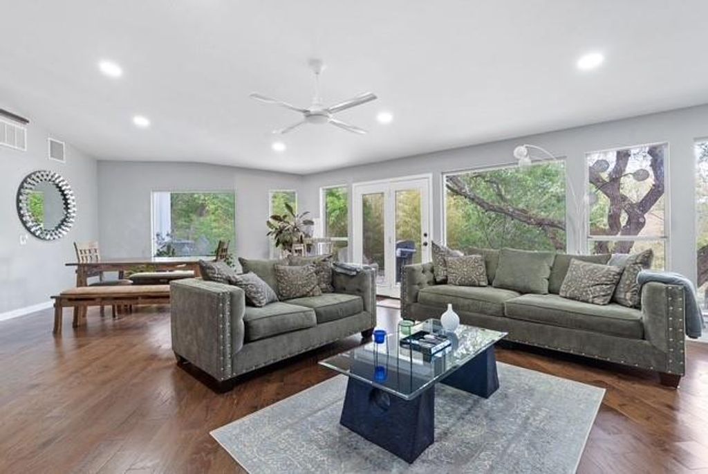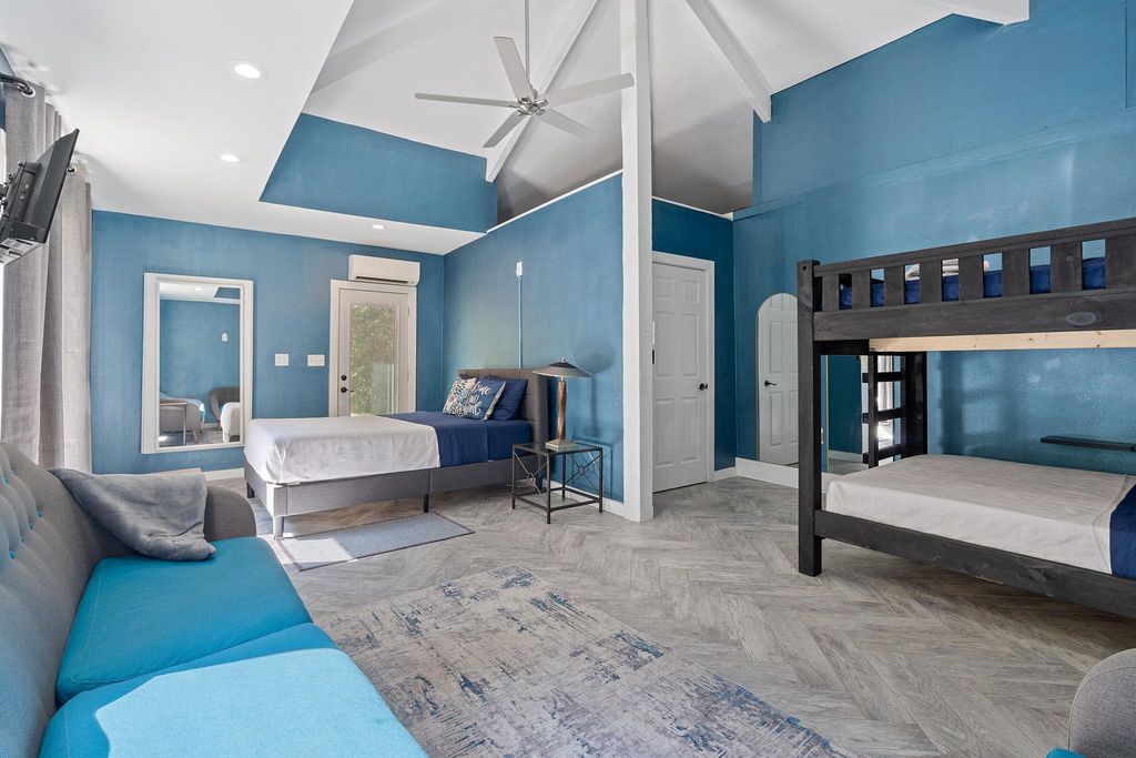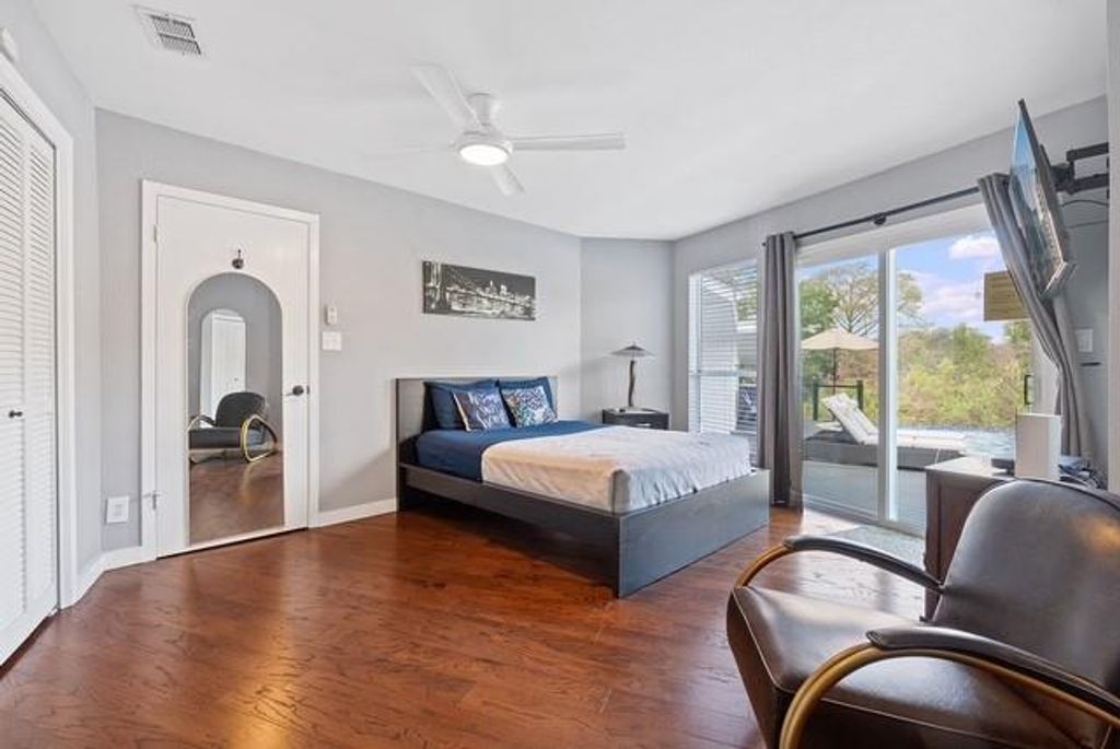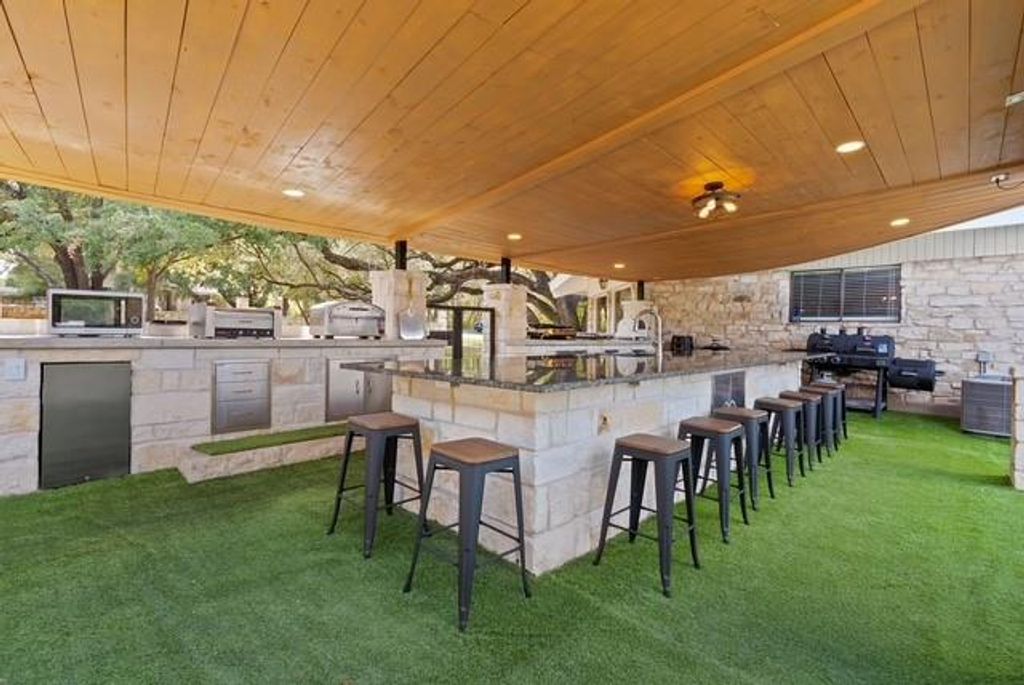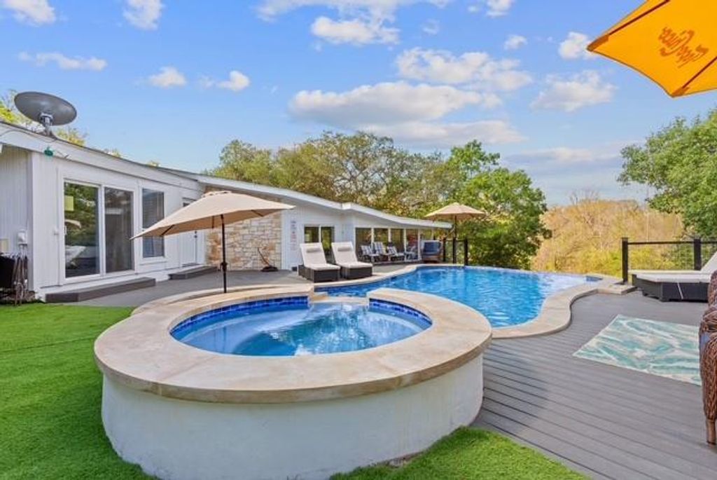 Welcome to your own South Austin oasis! This stunning property offers an unparalleled retreat with serene direct backyard access to the Onion Creek Greenbelt. Designed as an entertainer's dream and a top-performing Airbnb, this home offers a well-established book of business and rave reviews, with the opportunity to be passed along to the buyer if desired. Inside, a striking stone fireplace and vaulted ceilings create an open, inviting atmosphere. The sunken living room features a wet bar, built-ins, and a rolling library ladder, and gourmet kitchen with stainless steel appliances makes this property ideal for both relaxation and entertaining.The home boasts panoramic views of Onion Creek and a bright, airy atmosphere, enhanced by skylights and floor-to-ceiling windows. The primary suite is a retreat in itself, featuring private porch access, two walk-in closets, and a luxurious bath with marble countertops, dual vanities, a soaking tub, and a walk-in shower. Step outside to an exceptional outdoor area, complete with a heated infinity pool, jacuzzi, and a cabana-style outdoor kitchen. Enjoy fun activities like sand volleyball, horseshoes, and ping-pong, all within a fully fenced, private setting. Conveniently located near Texas Keeper Cider, Menchaca bars, Cabela's, and HEB, with easy access to downtown Austin and Buda/Kyle, this home offers a unique blend of luxury, comfort, and investment potential. Don't miss your opportunity to acquire one of the most sought-after rental properties available!