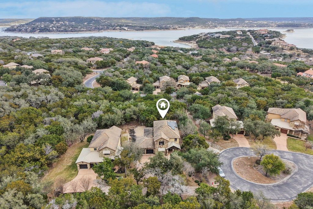 Embrace a daily vacation lifestyle in this stunning residence, perfectly positioned on a private cul-de-sac within the prestigious gates of The Hollows on Lake Travis. Offering the ultimate "lock and leave" convenience and situated to maximize breathtaking Hill Country views, this home invites you to experience vacation-level relaxation every single day. Discover refined living in this spacious 4-bedroom, 4-bathroom floor plan designed for both comfort and entertainment. The main level greets you with rich wood floors and a soaring stone fireplace that anchors the open living area. The chef's kitchen serves as the heart of the home, featuring gleaming granite countertops, stainless steel appliances, and a gas range. Just off the main living space, the primary suite provides a serene sanctuary with direct outdoor access and a spa-inspired bathroom. A second bedroom and full bath on the main level offer excellent convenience for guests or a home office. Upstairs, the home expands into a massive family room and entertainment hub, complete with a convenient wet bar for hosting. Step out onto the expansive covered balcony to enjoy panoramic vistas and cool lake breezes"”the ideal spot for morning coffee or evening cocktails. Two additional bedrooms and bathrooms on this level ensure ample space for family and visitors. Outside, the covered lower patio features a built-in outdoor kitchen, making al fresco dining effortless against the backdrop of mature trees and privacy. Living in The Hollows is more than just a location; it is a world-class lifestyle. Residents enjoy exclusive access to the award-winning Hollows Beach Club with resort-style pools, a restaurant, and BBQ areas, as well as the deep-water NorthShore Marina. With miles of hiking trails, a fitness center, and a kayak club just moments away, this home delivers the perfect balance of luxury and recreation. Schedule your private tour today and start living the vacation lifestyle you deserve.