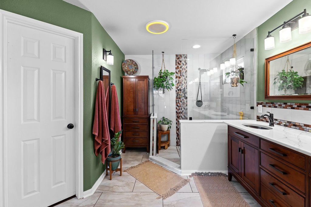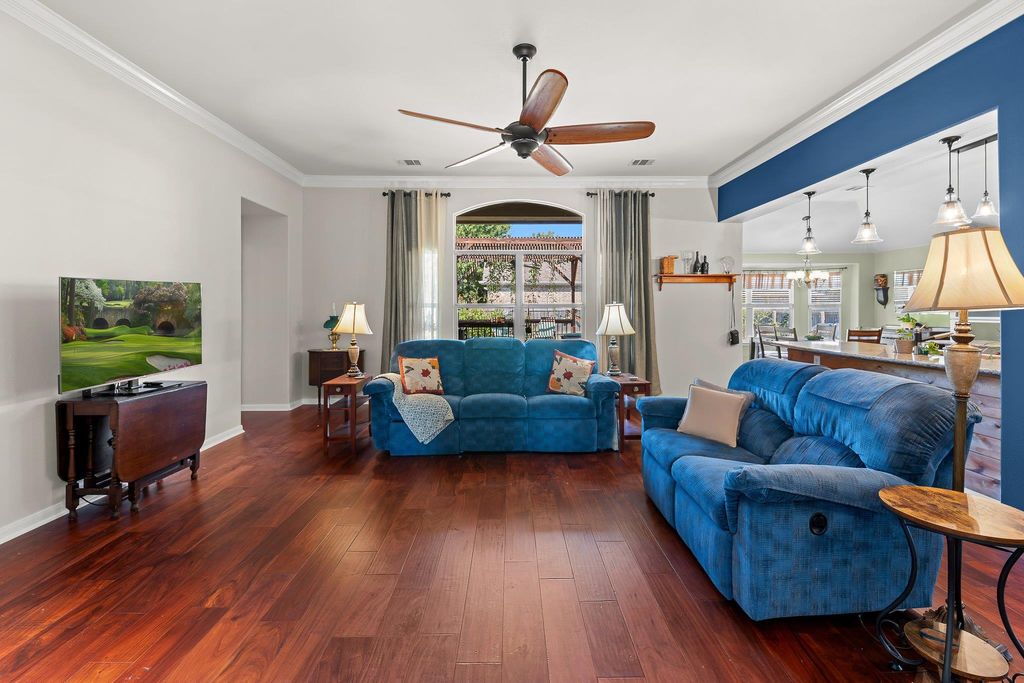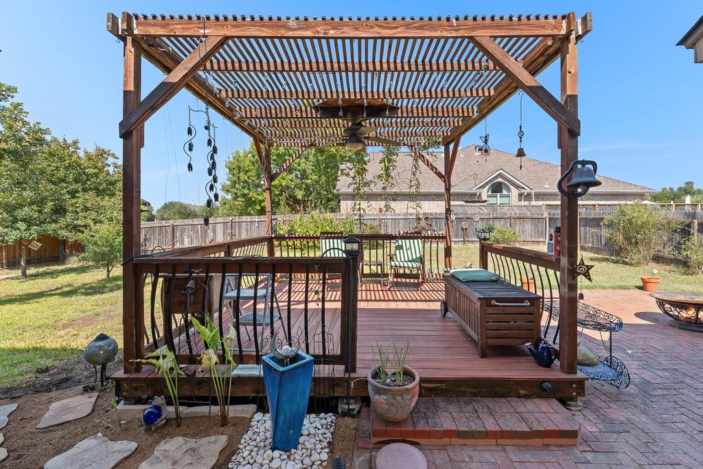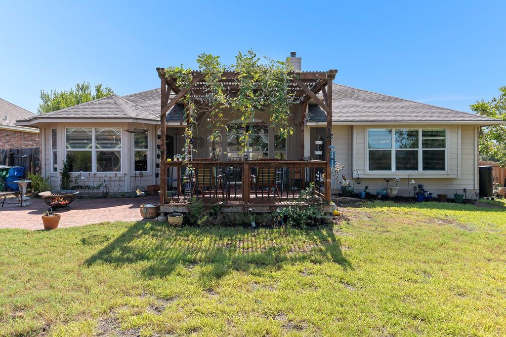 19716 Diablo Dr, Pflugerville, TX 78660, isn't just an address"”it's a lifestyle blending comfort, charm, and convenience. This single-story home with tall ceilings offers 3 bedrooms, 2 bathrooms, an office/flex room, and an open floor plan ideal for both daily living and entertaining. Wood floors add warmth throughout, while the living room features crown molding and an updated fireplace with a cedar mantel, stacked tile surround, and quartz hearth. The kitchen shines with quartz countertops, tile backsplash, a gas stove, large island, and breakfast bar for casual dining. The primary suite feels like a retreat with dual vanities, walk-in shower, walk-in closets, and a Bluetooth night-light speaker. The secondary bath is updated with quartz and new tile. A dedicated office offers flexible use, even as a 4th bedroom. Outdoors, the private corner lot boasts an L-shaped yard with a privacy fence, covered patio, 12x12 pergola with water fountain, 16x12 brick patio, and mature trees for shade. Enjoy golf course living across from the 17th tee while still maintaining backyard privacy. Practical features include a laundry room and 2-car garage. The location is unbeatable"”close to Murchison Elementary, Kelly Lane Middle, Hendrickson High, shopping, restaurants, the new H-E-B, and Hwy 130 for easy commuting. Lake Pflugerville Park is less than 2 miles away with trails, playground, boat launch, pavilion, and beach. Pflugerville also offers 71+ miles of trails, enhancing recreation and connectivity. Thoughtfully updated and move-in ready, this home is perfectly positioned for its next chapter.