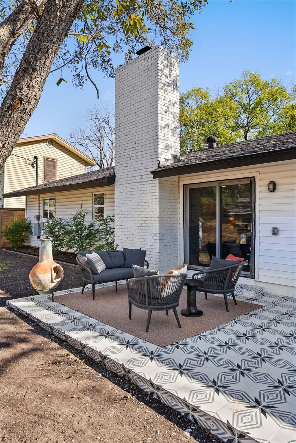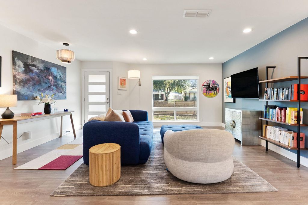 Welcome to 1812 Ohlen Rd, a charming and fully renovated 4-bedroom, 2-bath ranch-style home in Central Austin. Set on a fenced corner lot at the end of a friendly cul-de-sac"”with no HOA"”this 1,984 sq ft home offers a smart, open layout and great natural light throughout. Enjoy the flexibility of two distinct living areas: a comfortable lounge for TV and unwinding, plus a stylish secondary space ideal for listening to music, sipping a drink, or hosting friends. The secondary space includes a wood-burning fireplace and sliding doors that lead directly to the backyard. The large, open kitchen serves as the heart of the home, with plenty of space for cooking and gathering. A dedicated dining area sits just off the kitchen"”casual and connected, but with its own defined space. The primary bedroom is light and bright with its own en-suite bathroom. Two additional guest rooms are spacious, and the fourth bedroom works well as an office or flex space. A convenient laundry/drop zone helps keep everyday items like shoes and backpacks organized. The backyard is one of the highlights"”complete with a cute, tiled patio, mature Texas Oaks providing generous shade, turfed areas for low-maintenance living, and an additional gate from the street with a concrete path for bikes, toys, or extra parking. A full renovation in 2022 included plumbing drain lines, windows, roof, flooring, bathrooms, kitchen, lighting, and interior/exterior paint. More recent updates include HVAC and ductwork, a driveway shade sail, and refreshed tile and flooring in the primary suite. All of this in a central location that's hard to beat"”15 minutes to downtown, 10 minutes to the Domain, close to Burnet Road restaurants and shops, near parks and the library, and with easy access to major highways.