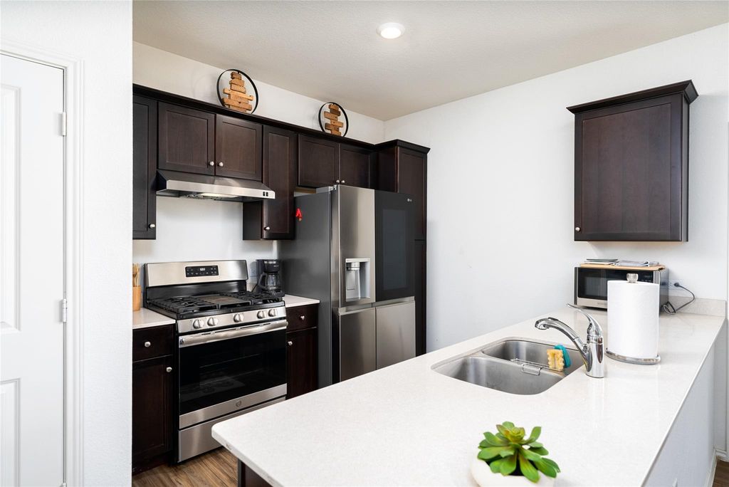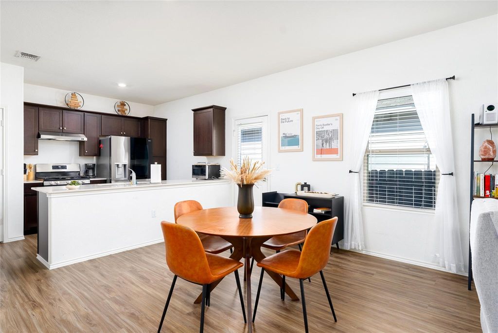 This single-level, 3-bedroom, 2-bath home sits in a Southeast Austin neighborhood where location, layout, and long-term upside all line up, whether you're buying to live in it, rent it out, or do a little of both. Built in 2020, it still feels fresh, with modern finishes, eco-friendly touches, and a layout that makes sense. Out back, there are no rear neighbors, just a greenbelt buffer that adds privacy and a little breathing room you don't always get this close to the city. Inside, LVP plank floors and a mix of natural and recessed lighting give an easy, open vibe throughout the open concept living space. The kitchen anchors the home and flows right into the living and dining areas, making it simple to host friends, keep an eye on everything, or simply enjoy everyday life without feeling disconnected. The primary suite has its own ensuite bath and a generous walk-in closet, while two additional bedrooms flex easily as guest space, home office, or whatever your current stage of life calls for. A two-car garage and solar panels add everyday convenience and long-term efficiency. And the lifestyle outside the front door is a big part of the appeal, you can walk to the neighborhood pool, park, playground, and trails, which is a huge plus for residents or potential tenants. Step beyond the community and you're minutes from McKinney Falls State Park's 640 acres of trails, fishing spots, and camping, plus the MetCenter Disc Golf Course for easy outdoor escapes. Location-wise, it's hard to beat; quick access to 71, 183, and I-35 keeps commutes easy, major employers like Amazon, OriGen, and the Tesla Gigafactory are nearby, the airport is under 10 minutes away, and downtown Austin is less than 10 miles out. All of that adds up to a home that's not just easy to enjoy, but also easy to justify as a smart investment in one of Austin's most connected, growth-driven areas. Buyer to verify all info.
