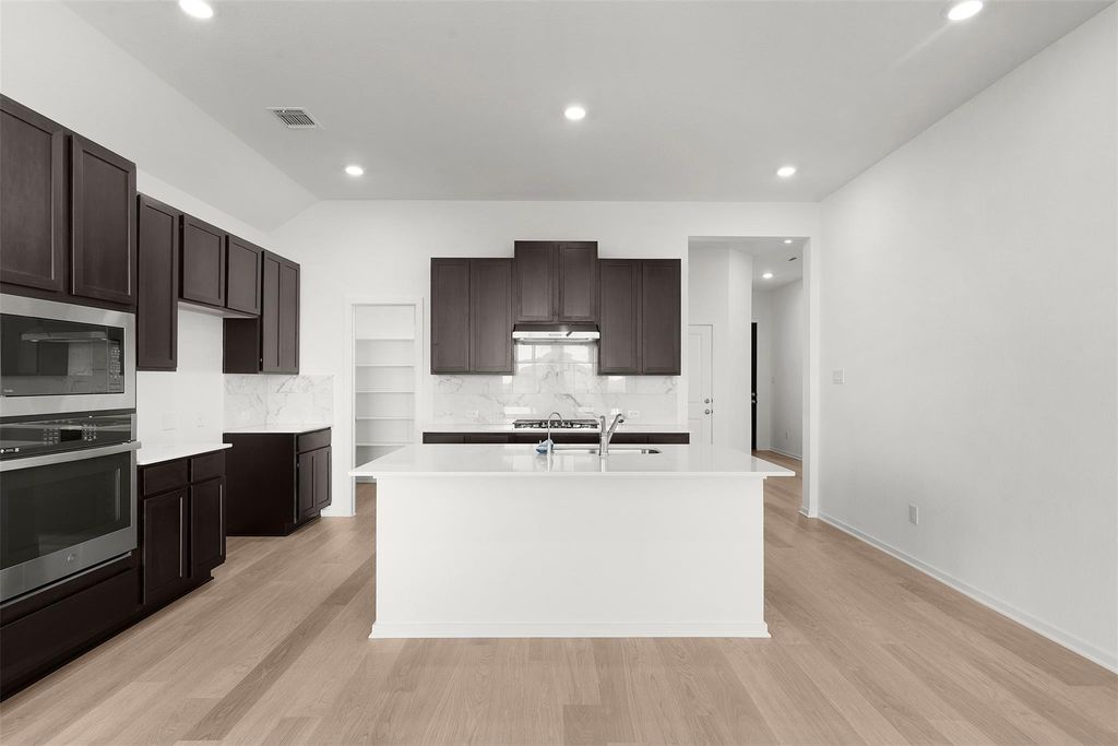MOVE IN READY! The Adalynn is a stunning new home floor plan that boasts a spacious and modern design. With 3 bedrooms, 2 full baths, a flex room, and covered outdoor living area, this home is perfect for families who love to entertain. The open concept layout creates a seamless flow between living, dining, and kitchen, making it easy to host gatherings with friends and loved ones. The vaulted ceilings and windows allow for an abundance of light to flood the family room, creating a warm and inviting atmosphere. The kitchen features built-in appliances, espresso stained cabinets with gold hardware, beautiful upgraded quartz countertops, providing ample space for meal prep and entertainment, center island overlooking the family room, and walk-in pantry. The upgraded flooring and finishes throughout the home add a touch of luxury and complexity. The primary bedroom is a true oasis, complete with tray ceiling, lots of natural light, spacious walk in closet and luxurious ensuite bathroom with oversized shower, linen storage, and dual vanities. The 2 additional bedrooms are perfect for children or guests, and the 2nd full bath ensures everyone has plenty of space and privacy. The spacious flex room situated between secondary bedrooms and full bath is perfect for study, work, fun, or fitness. Overall, the Adalynn is a beautiful, functional home that is perfect for those who value style, comfort, and convenience. This home is sure to impress! Visit our model home and ask about our current buyer incentives!