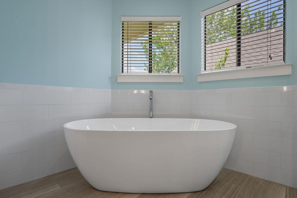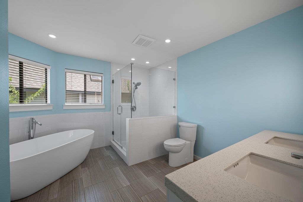 Perfectly situated on a prime corner lot, this charming two-story home offers a unique blend of character, space, and updates in a welcoming, tight-knit community. Inside, soaring ceilings and a cozy fireplace create a warm and inviting living space filled with natural light. The open floorplan flows effortlessly from the living room into the kitchen, which features a gas range, breakfast bar, and easy-care bamboo laminate and tile flooring throughout the main level. The entire second floor is dedicated to the luxurious primary suite, which has been fully remodeled to include a spa-like bathroom with a large corner soaking tub, an oversized walk-in shower, and fresh modern finishes. The entire upstairs has been beautifully updated, providing a peaceful and private retreat. Additional recent improvements include a brand-new air conditioning unit, redone air vents and ducts, and fresh interior paint throughout the home. Located directly across from the community park and pool, this home offers both comfort and connection, with neighbors who make the area truly special. A rare opportunity to enjoy an updated home in an established, friendly neighborhood. ***Bundled service pricing available for buyers. Connect with the listing agent for details.