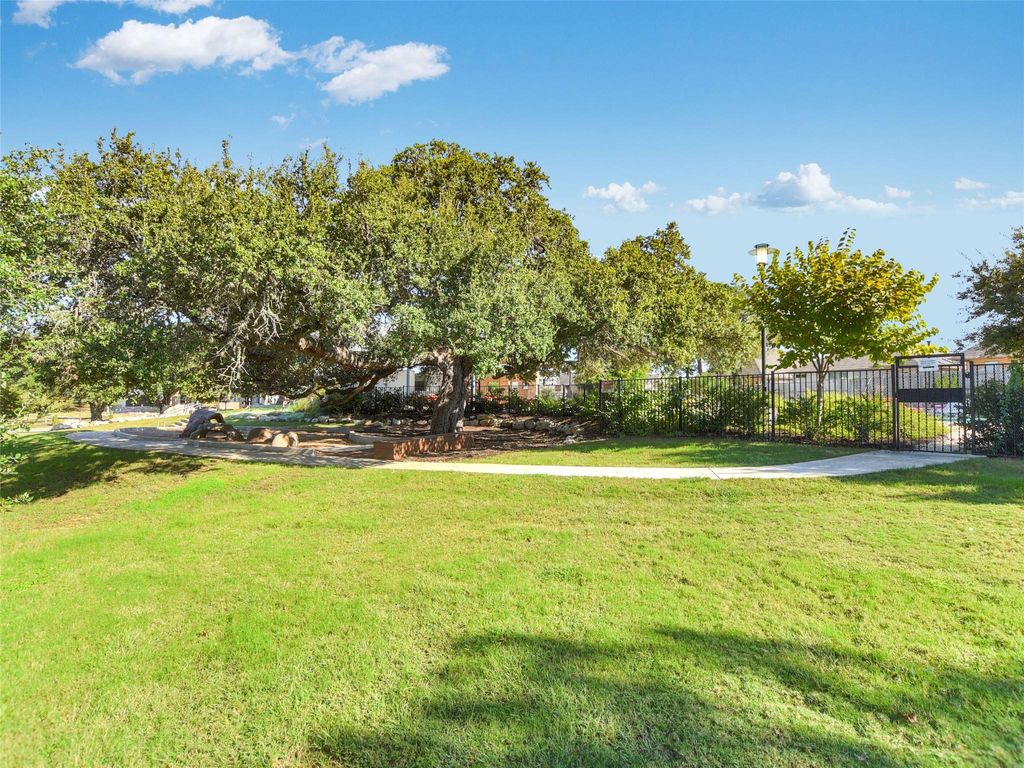 This beautiful home impresses from the moment you walk in with its 23-foot soaring ceilings, dramatic windows, and abundant natural light. The open-concept floor plan seamlessly connects the spacious living, dining, and kitchen areas, creating an ideal space for entertaining and everyday living. The kitchen features refinished 42" maple cabinets, a timeless subway tile backsplash, and sleek quartz countertops that combine style and function. Step outside to your back patio with serene greenbelt views, the perfect setting for morning coffee or evening relaxation. Upstairs, you'll find a huge additional living space that offers flexibility for a media room, game room, or home office. Recent upgrades include new luxury vinyl plank flooring installed in 2025, a full-yard sprinkler system, and upgraded metal staircase spindles for a modern touch. This thoughtful layout provides plenty of room to gather while still allowing privacy and retreat. Located just a short walk from the community's beautiful greenbelt trail and resort-style pool, this home offers the perfect balance of comfort, style, and access to outstanding neighborhood amenities.