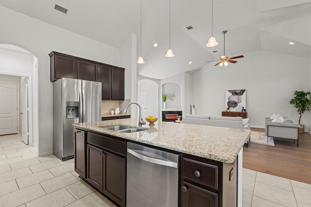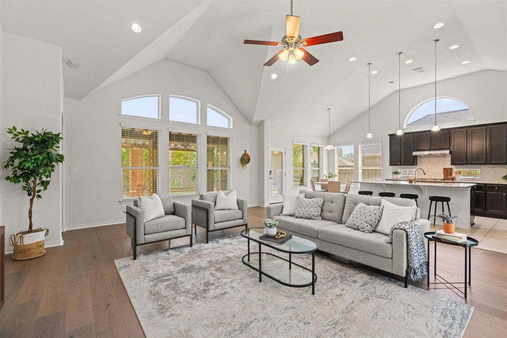 Welcome to 3213 Falconers Way, a rare gem in the sought-after Lakeside at Blackhawk community. This beautiful home offers wonderful curb appeal, a 4-car garage, and a spacious, functional floorplan. As you step inside, your eyes are guided to the rear wall, adorned with large windows that stretch to the high ceilings, inviting natural light to fill the open-concept home. The communal spaces are ideal for entertaining, with an inviting bright aesthetic anchored by rich wood flooring. The thoughtfully designed layout includes 3 bedrooms, 2.5 baths, and a dedicated home office. The heart of the home is the kitchen, featuring espresso cabinetry, granite countertops, built-in appliances, and a large island that seamlessly connects to the living room and breakfast nook. The entertaining experience extends to the backyard, where an expansive covered patio with a built-in grill station and pergola-covered patio extension awaits, inviting al fresco dining, relaxation, and hosting friends. The primary suite is the perfect getaway for the owners with windows extending to the vaulted ceilings, perfectly framing an ideal seating area. French doors lead to the ensuite bath, where you'll enjoy spa-like experience with a jetted tub, a separate walk-in shower, separate vanities, and a huge walk-in closet. The home offers a second full bath with a dual vanity conveniently situated between the 2 secondary bedrooms, and a convenient powder room. The community itself provides residents unsurpassed amenities, including a clubhouse, fitness center, pool, park/playground, walking trails, and sports courts. Convenience is key, with Costco and HEB, 3-4 miles away. Rowe Elementary is located across from the amenity center, while Rowe elementary is only 1/2 mile away, Cele Middle/Hendrickson HS- 2.8 miles away. This home truly has it all; a prime location, perfectly designed layout and a rare 4-car garage! Home is in great condition. Use our preferred lender to save $$ toward closing costs