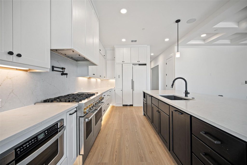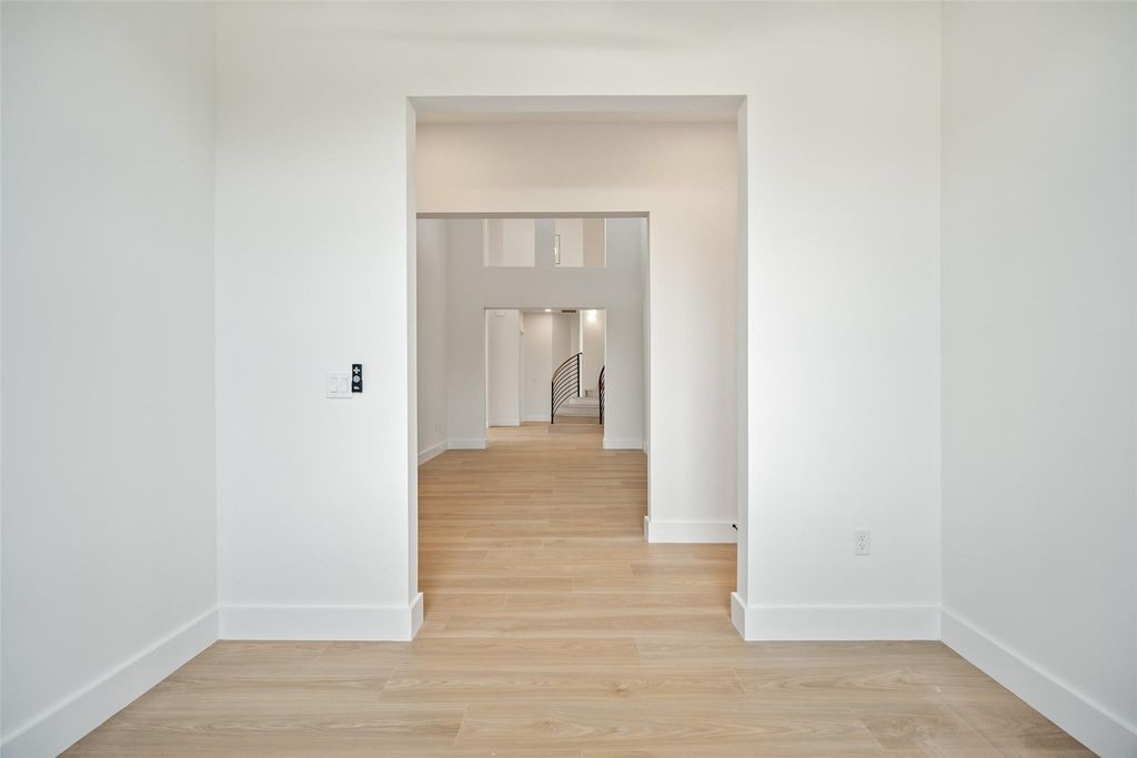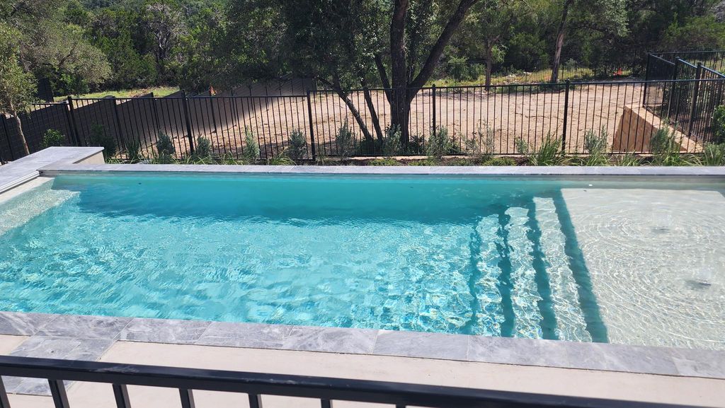 Luxury living reaches new heights at 10105 Cressida Bend, located in the exclusive River Place community and part of MileStone's high-end M Signature series. This stunning 6-bedroom, 4.5-bath home sits atop one of the highest points in Austin, offering rare panoramic views of Downtown and the protected Balcones Canyonland Preserve. The spacious half-acre homesite features a tiered backyard with an in-ground heated pool and motorized hard cover, creating a resort-style retreat. Inside, the layout includes both the primary suite and guest suite on the main level, plus a study, formal dining room, gameroom, media room, and open family room. A dramatic entry foyer and formal dining room showcase soaring 20' ceilings, while additional ceiling details elevate the family room, study, media room, gameroom, and primary suite. The chef's kitchen features a JennAir Rise professional-grade range with double oven, 6-burner cooktop, griddle, pot filler, Sub-Zero cabinet-faced refrigerator, waterfall island, 63" full-overlay soft-close cabinetry, designer hardware, and built-in speakers. The luxurious primary suite offers view windows, boxed ceiling, built-ins, and a spa-like bath with split vanities, floor-level lighting, soaking tub with full-height tile surround, walk-in shower, and direct access to the utility room via a spacious walk-in closet. This home also boasts spray foam insulation, Andersen windows, energy-efficient fixtures, and a high-performance heat pump system. River Place offers top-rated schools, including River Place Elementary and Vandegrift High, plus close access to parks, River Place Country Club, Lake Austin, Four Points, The Domain, trails, dining, and recreation in Austin's scenic hill country.
