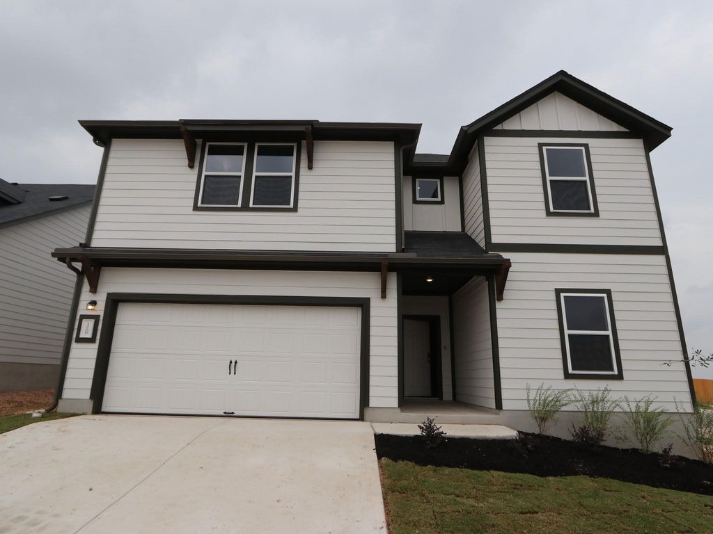 In the city limits of Austin, one of our newest floor plans, the Caprock, offers a versatile 2-story home offering 2,543 square feet of thoughtfully designed living space. With 4 bedrooms, 2 and a half bathrooms, and a 2-car garage. This home is perfect for those seeking both space and comfort. Upon entering, the foyer leads to an expansive open-concept area, where the family room flows seamlessly into the dining room and kitchen. The owner's suite is downstairs with a large walk-in closet and a private owner's bathroom with a shower. Upstairs, you'll find three additional bedrooms, each with walk-in closets, and a shared full bathroom. This home is also one block away from the community pool and amenities making it a prime location in the heart of the community. Downtown views off back patio and backs to ranch land. Come make an appointment today to see this wonderful home as it will not be on the market long with this amazing price!