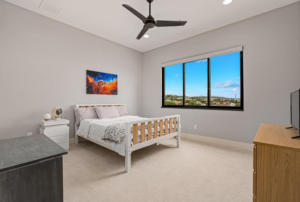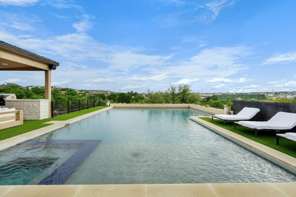 Experience elevated Hill Country living in the highly sought-after, gated community of The Peninsula at Rough Hollow. Perched on a gentle slope with panoramic views for miles, this exceptional estate offers the best of both worlds"”breathtaking vistas and a flat, usable backyard perfect for entertaining and everyday enjoyment. Set on over an acre, the resort-style outdoor space features a resort-sized pool and spa, covered cabana, sport court, batting cage, and wide-open green space ideal for play, events, or relaxing under the stars. Inside, the home is a true showpiece, where designer details have been meticulously selected throughout"”from high-end lighting and custom cabinetry to thoughtfully chosen finishes that create a seamless, elevated aesthetic. The gourmet kitchen is the heart of the home with double islands, top-of-the-line appliances, and a layout made for gathering and entertaining. With 4 bedrooms, 5 bathrooms, and an abundance of flexible living spaces, this home adapts beautifully to modern lifestyles. The private primary suite offers a serene retreat with a spa-like bathroom, oversized walk-in shower, dual vanities, and an organized walk-in closet. A guest suite on the main level, dedicated office, entertainment room downstairs, and upstairs flex space provide functionality, comfort, and style at every turn. Located within the top-rated Lake Travis ISD and just minutes from the Hill Country Galleria for premier shopping, dining, and entertainment. As part of the exclusive Rough Hollow community, residents enjoy access to a private yacht club, lakeside dining, fitness facilities, pools, and miles of hiking trails. Every detail in this home has been carefully curated to deliver a truly elevated living experience. This is more than a home"”it's a lifestyle built for beauty, comfort, and unforgettable moments.