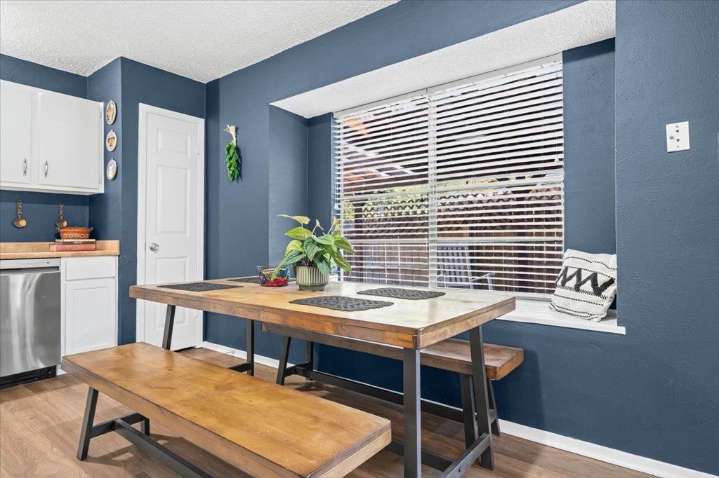 This charming single-story home in Austin's 78745 zip code has been lovingly cared for and updated with fresh, modern touches. The seller had planned to make this her forever home, but life circumstances have led to a change in plans, and she's offering this beautiful property for sale. The interior boasts a functional layout with great natural light and sleek laminate flooring throughout. The living room features a ceiling fan and a stunning white stone floor-to-ceiling fireplace that separates the living room and kitchen. The kitchen has been beautifully updated with freshly painted cabinets, a window, pantry, and stainless steel appliances, and opens up to a sunny breakfast area with a cozy window seat and a view of the backyard. The primary bedroom is complete with a ceiling fan, laminate flooring, a huge walk-in closet, and an en-suite bathroom with a framed circular mirror and bathtub/shower combo. Both secondary bedrooms have walk-in closets and laminate flooring, providing comfortable space for family and friends. This home has been well-maintained and updated, with recent improvements including updated flooring, a recent roof (12/24), updated stove top, and recent HVAC. The backyard is perfect for outdoor entertaining, with a large covered patio overlooking the fully fenced yard, providing ample space for relaxation and fun. Conveniently located close to parks, shops, and restaurants, this home offers the perfect blend of comfort, style, and convenience. Don't miss the opportunity to make this beautiful home yours.