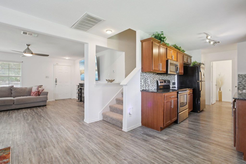 This location also offers quick access to major employers and attractions"”just 19 minutes to the Tesla Gigafactory, 18 minutes to Samsung, and 26 minutes to downtown Austin. Tucked at the end of a cul-de-sac in the established Carriage Hills community, this well-maintained two-story home offers a functional layout with 3 bedrooms, 2.5 baths, and multiple living areas. Built in 2009, the home features a bright open floor plan, vinyl plank flooring on the main level, and a thoughtfully designed kitchen with granite countertops, stainless steel appliances, and plenty of cabinet space. The downstairs living and dining areas provide a natural flow for everyday living or hosting. A convenient half bath is also located on the main level. Upstairs, a versatile bonus space can serve as a second living room, play area, or home office"”flexibility that fits a variety of lifestyles. All three bedrooms are upstairs, including a spacious primary suite with a private bath and walk-in closet. Enjoy the covered front porch, large backyard, and shaded area under the tree"”perfect for relaxing or creating your own outdoor retreat. A two-car garage and wide driveway offer plenty of room for parking and storage. Located near neighborhood parks, basketball courts, and playgrounds with easy access to shopping and schools, this home combines comfort and convenience in a community setting. Carriage Hills residents enjoy access to neighborhood parks, playgrounds, and a basketball court.