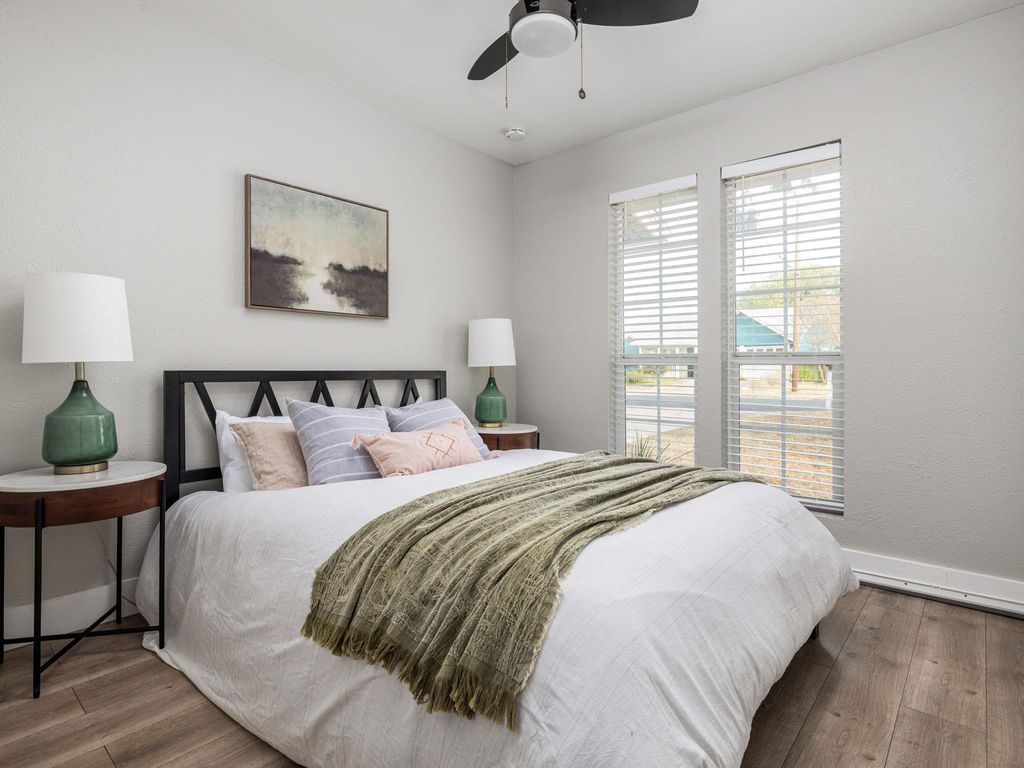 Step inside to an inviting open layout featuring a cozy wood-burning fireplace, abundant natural light, and warm designer finishes, such as, wood-like vinyl floors throughout (no carpet), built in book shelves and coffee/drink bars, an updated kitchen with quartz countertops, a designer herringbone tile backsplash wall, designer exposed shelves, custom grey cabinets with tons of storage, stainless steel appliances, and a seamless flow of the living and dining areas "” perfect for entertaining or relaxing at home. Enjoy the flexibility of a large secondary living room with a built-in bar area just off the great room ideal for either a formal dining room for hosting gatherings or creating a toy or game room. Retreat to the spacious primary suite, featuring a private sitting room or study, French doors leading to the backyard, and a gorgeously upgraded spa-like bathroom with a quartz double vanity, walk-in shower, and charming shiplap accent wall. Additional recent upgrades include roof, HVAC, electrical, and more "” this home is truly turn key! The private backyard offers plenty of room for outdoor entertaining, gardening, or simply enjoying Austin's year-round sunshine. Located just blocks to Patten Elementary and Small Middle (both top rated schools), trails, restaurants, Whole Foods, Costco, Alamo Drafthouse AND only 4 exits to Zilker Park and downtown, this home combines move in ready cottage living with an unbeatable location in one of South Austin's most loved communities "” this Westcreek gem truly has it all!