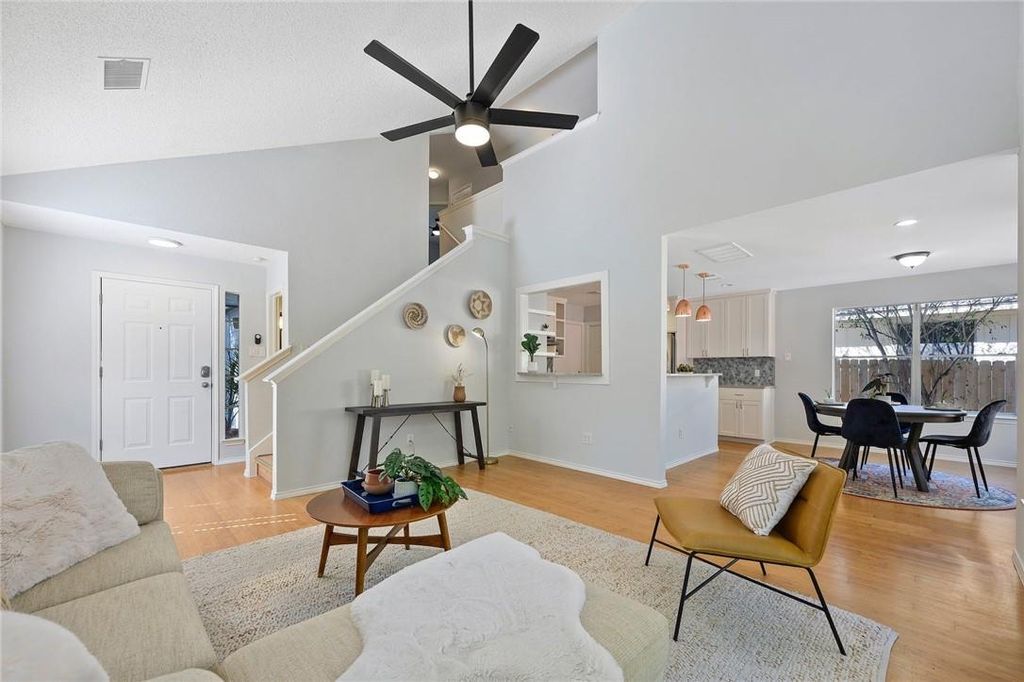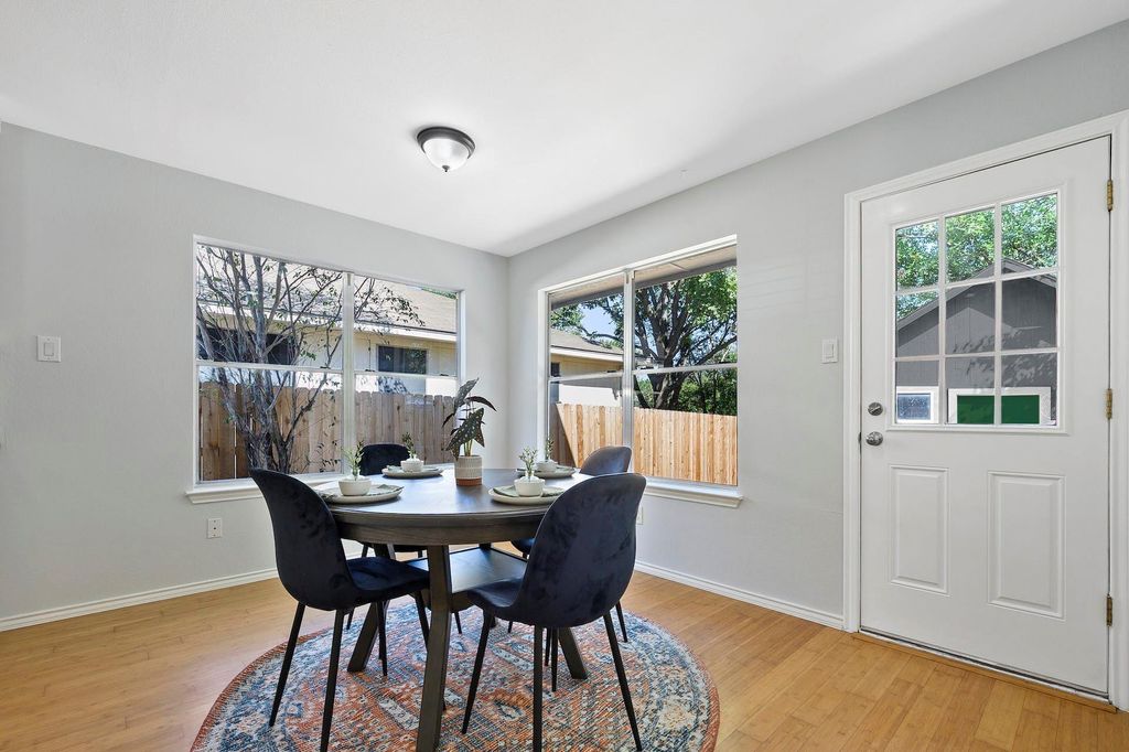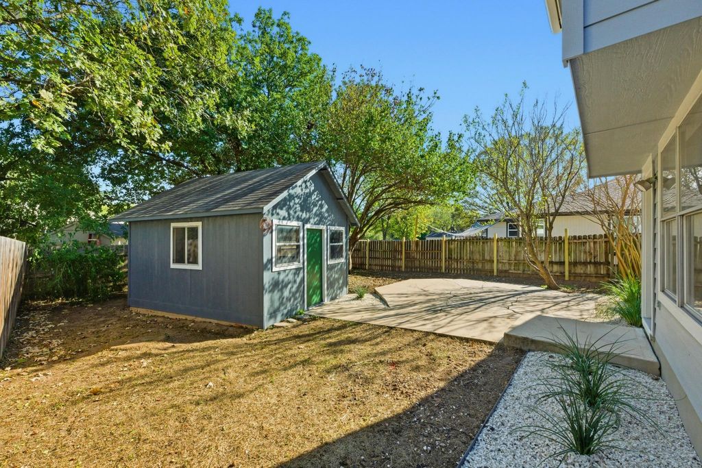 Soaring ceilings, incredible natural light, and a long list of major upgrades make this Parkwood gem truly stand out. Sunlight pours through beautiful transom windows onto sustainable bamboo floors, creating a warm and inviting living space. Impressively energy-efficient"”19 solar panels offset up to a documented 75% of electricity costs, paired with a 2022 Rheem 16-SEER condenser, furnace, and evaporator coil, and a 2021 Rheem 40-gallon water heater. Exterior improvements include 2022 James Hardie siding, 6-inch gutters, dark sky matte black fixtures, a floating address, and fresh exterior paint for a crisp, modern curb appeal. The professionally remodeled HGTV kitchen (2016) shines with chic finishes, sleek counters, and stainless-steel features. Appliances included are a Frigidaire French-door Energy Star refrigerator with icemaker, as well as a washer and dryer. A spacious converted garage adds flexibility for a home office, gym, or second living space. Step outside to enjoy a beautifully designed Thrive Landscape, featuring steel edging, white limestone gravel, concrete pavers, Red Yucca, Iris plantings, and an overall low-maintenance layout. A large hexagonal back patio, a convenient 195 sf storage shed, and several fruit trees complete this serene outdoor retreat. All of this in a centrally located pocket near Austin favorites"”just an 8-minute walk to Dittmar Park & Rec Center (with pool, indoor basketball, playground, and more), 10 minutes to The Thicket Food Park, and a short stroll to the 1st Street bus stop. Modern efficiency, thoughtful upgrades, and a stylish low-maintenance landscape"”this one checks all the boxes.