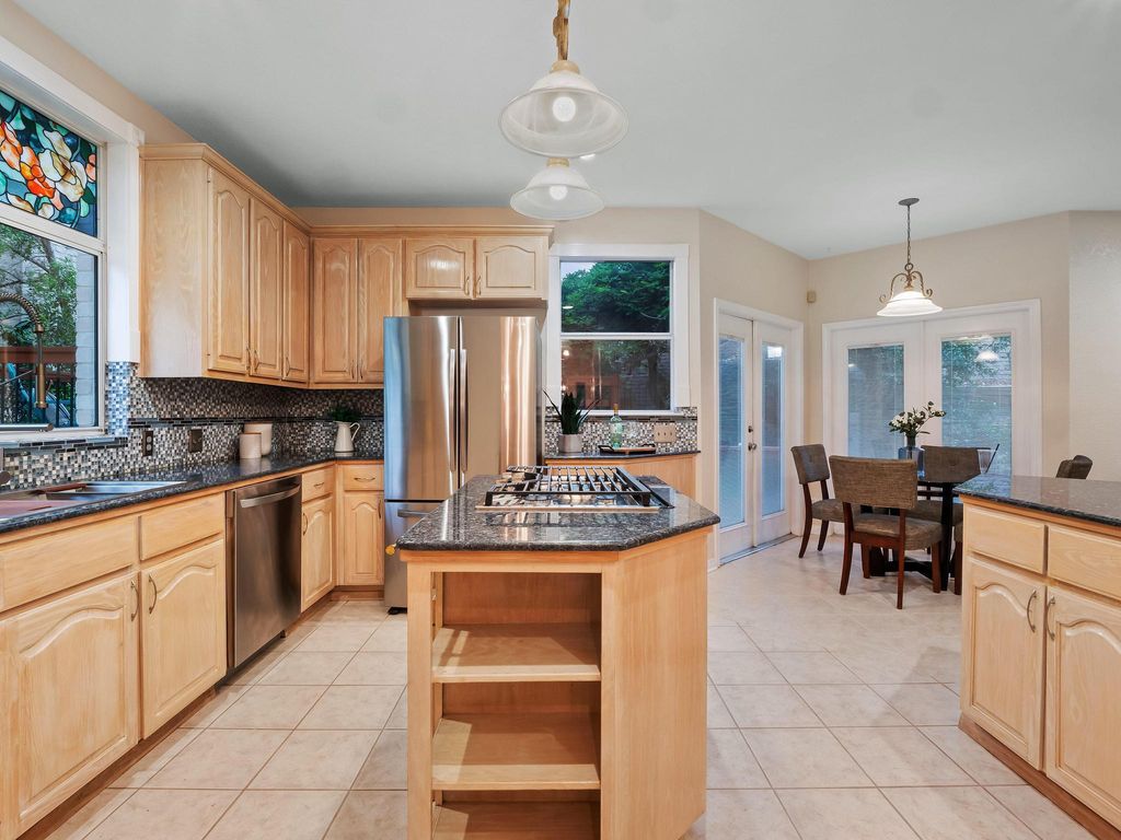 Beautiful home in Great Hills in North Austin near Hwy 360. Former artists designed and custom-built this home to use as their haven. This 2-story 4-sided brick home boasts an elegant living, formal dining area, and a casual den that opens to the spacious kitchen. The primary suite on the 2nd floor provides owners with an expansive bedroom connected to a large sitting room with an ensuite luxury spa-like bath, and a walk-in closet with two additional his/her closets. The primary bath features dual vanities, a walk-in shower, and a soaking tub, providing a luxury spa experience. The game room has beautiful oak floors, lots of natural light, a wet bar, refrigerator, and New LED recessed lighting. Enjoy multi-level decks in the backyard, overlooking the terraced pool and natural stone waterfall. Enjoy swimming or lounging at this home on summer nights. A goldfish pond is next to the lower covered deck patio. This home provides for dual driveways and a section that allows for private RV or boat storage behind a gate on the 2nd driveway. Numerous updates on the home: New interior and exterior paint, New Brushed Nickel chandeliers and lighting throughout, New Ceiling Fans with light and remote, New Chef's stainless kitchen sink and Stainless faucet, New Stainless Propane Cooktop on island, New LED lighting throughout, New tiled bathroom and New low-flow toilet, New Brushed Nickel hardware on all doors, New Carpet on 2nd floor, all ceramic tile steam-cleaned and sealed, new shutters installed on 2nd floor windows. All appliances will convey. Excellent location and is Move-In Ready. Near Arboretum, Domain, Gateway Shopping, Arbor Walk, shopping, fine dining, grocery stores, and easy access to Hwy 360, Hwy 183 & Mopac. Austin ISD schools feed Anderson HS. Businesses nearby: Indeed, Google, Hospitals, Pickle Research Center, Expedia, Amazon, and other small high-tech centers. Buyer to verify actual square footage, schools' info. See agent for Private Remarks/Notes.