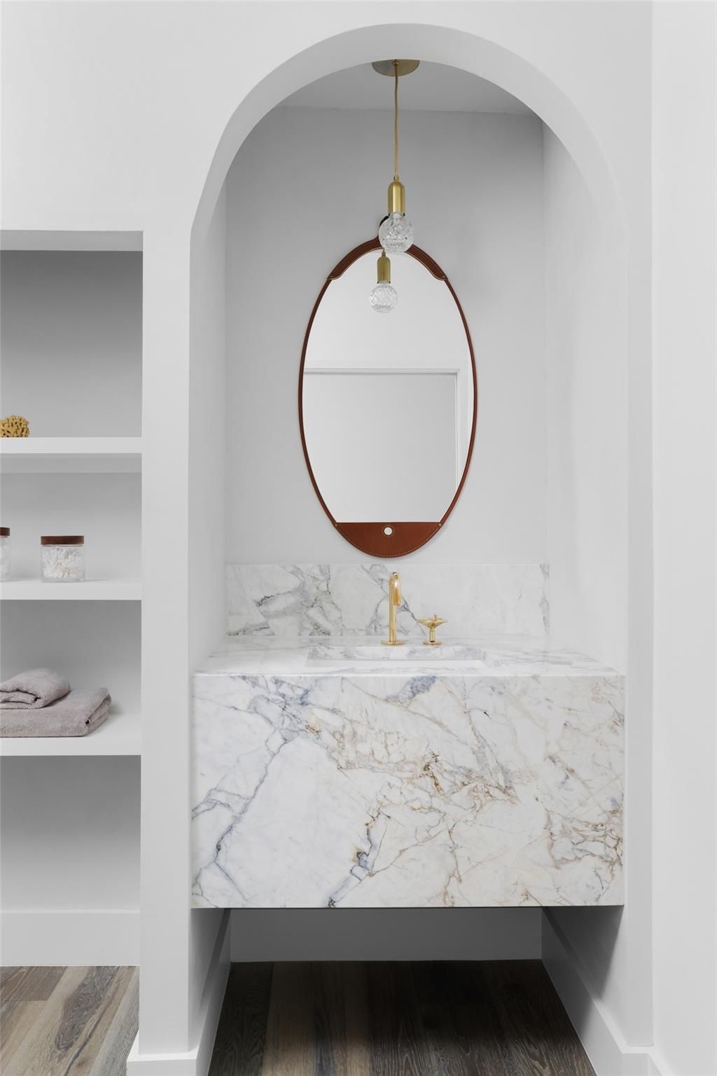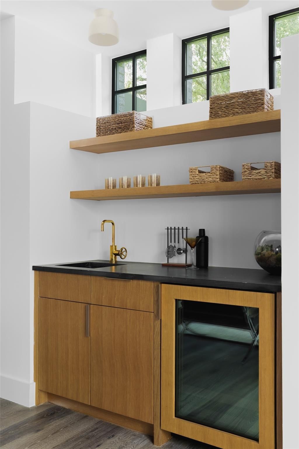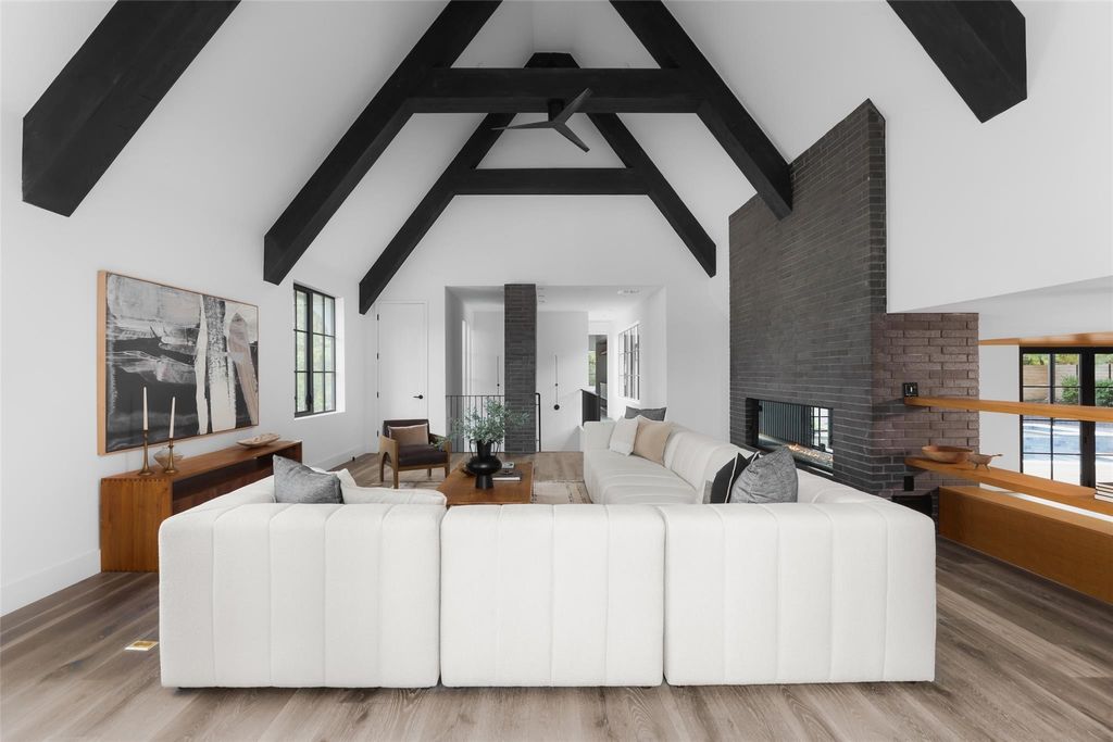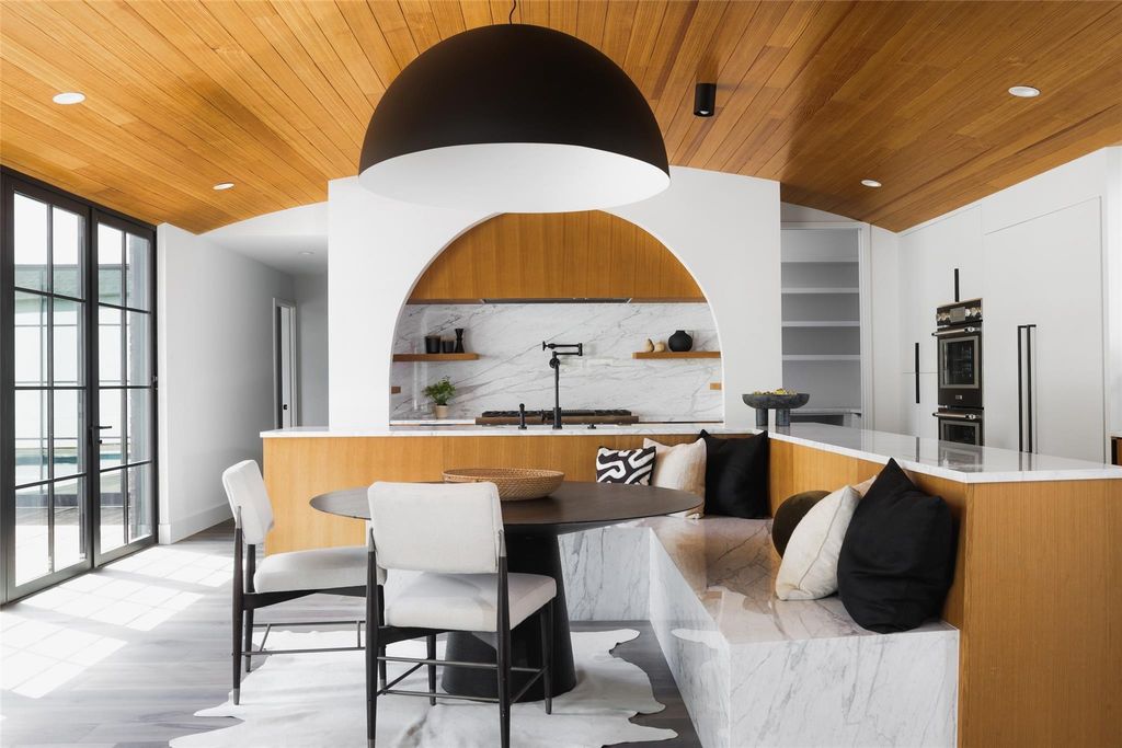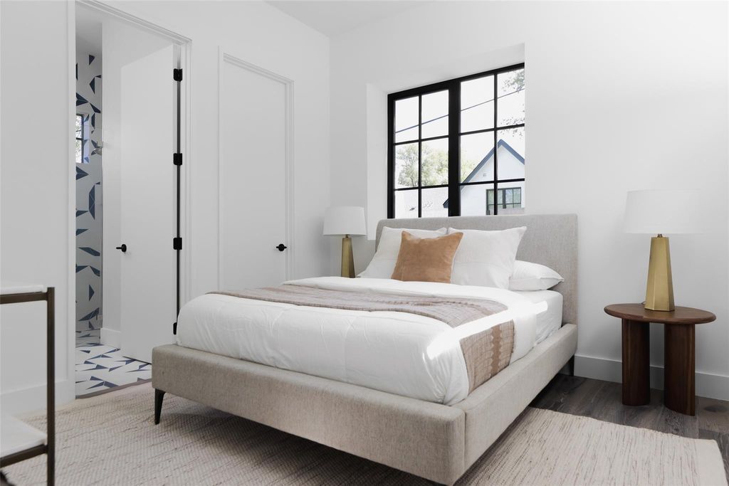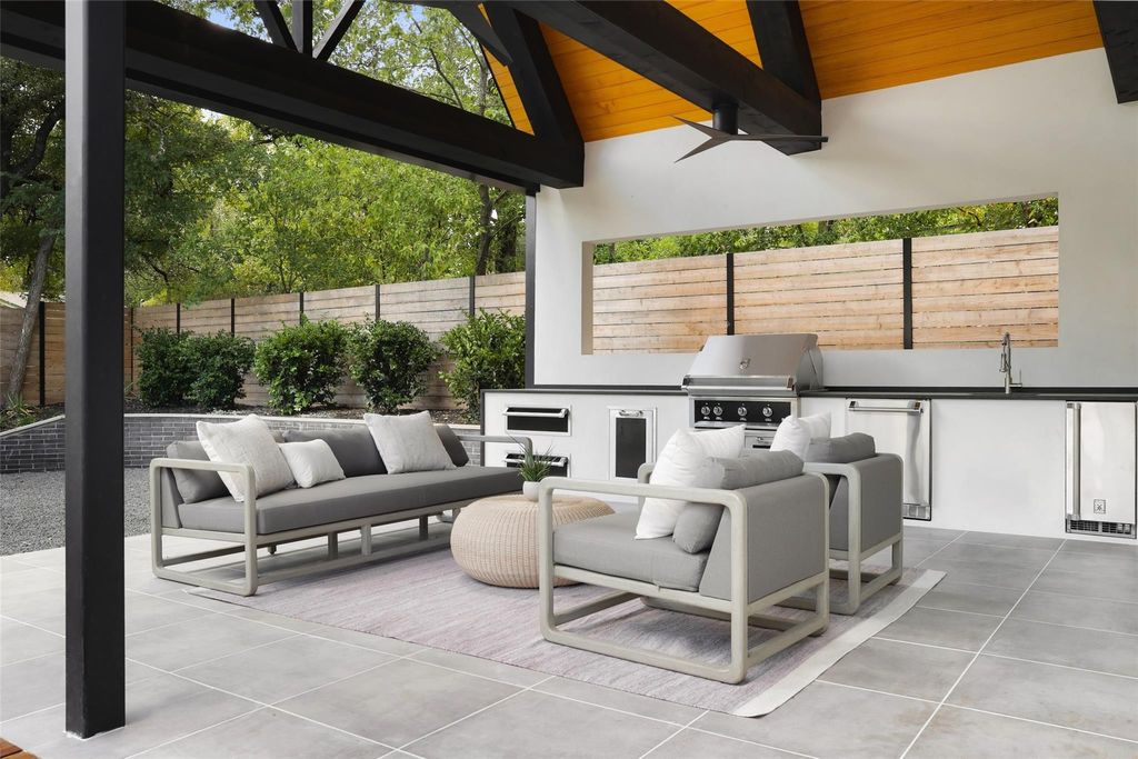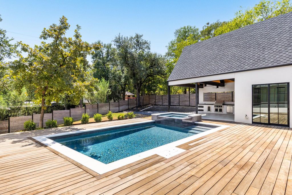 Situated on a large lot in the heart of Barton Hills, this modern Tudor residence masterfully pairs timeless architecture with the highest level of custom finish-out. Every detail from the wide-plank white oak flooring to the hand-crafted walnut cabinetry and polished soapstone surfaces reflects an elevated commitment to design and craftsmanship. The flowing floor plan is as functional as it is striking. A gourmet kitchen with premium Thermador appliances, dual dishwashers, and an oversized island with custom seating anchors the home, opening seamlessly into a dramatic living area with beamed ceilings and a double-sided fireplace. The multi-level design adds both dimension and distinction, effortlessly connecting all of the gathering spaces. The primary suite is a retreat unto itself, highlighted by soaring beams and a spa-like bath with marble finishes, an oversized walk-in shower, and a soaking tub. Secondary living on the lower garden level features a wet bar and beverage fridge, creating a stylish extension for entertaining. Outdoors, the expansive lot comes alive with a resort-style pool and spa, summer kitchen, and elegant decking framed by lush landscaping. The generous grounds allow for both privacy and possibility, a true rarity in Barton Hills. Positioned just minutes from Zilker Park, Barton Springs, and Austin's best dining and entertainment, this home delivers the perfect balance of luxury, livability, and location. A residence of this caliber is more than a home, it's a statement of style and space, designed for those who appreciate the very best in Austin living.