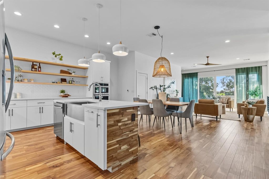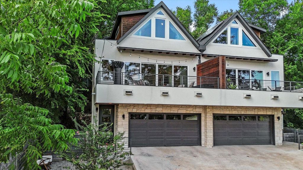 This spacious custom home blends thoughtful design with sustainable living. Built as a Conscious Green Build, it features solar panels, spray foam insulation, LED lighting, a heat pump water heater, and WaterSense fixtures for exceptional comfort and efficiency. Large windows fill the home with natural light, showcasing hardwood floors, custom wood details, and quality finishes throughout. The open kitchen includes premium built-in appliances, quartz countertops, a large island, custom backsplash, and a walk-in pantry, opening to the living area for an easy flow. Through 4-panel sliding glass doors, the living room connects to a wraparound terrace, ideal for quiet evenings or gatherings under string lighting. The home includes three ensuite bedrooms plus a powder room. A main-level junior suite offers flexibility for guests or extended stays. The primary suite features a wood accent wall, a triangular window, and a bath with dual vessel sinks and a frameless glass shower. The third bedroom loft adds warmth with natural wood accents and architectural character. Enjoy nearby favorites like The Cavalier, The Wheel, Kitty Cohen's, and Squatch Frontier Fitness. You can bike, walk, or take a quick drive to HEB, Whole Foods, or Sprouts. Town Lake for a quick dip and downtown Austin are both just minutes away, as is the Airport. Conscious Green Build with Modern Design and Lasting Comfort. Buyer and buyer's agent to verify all information.