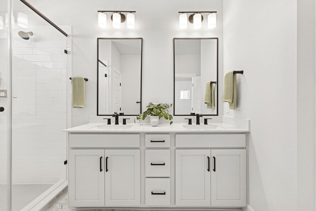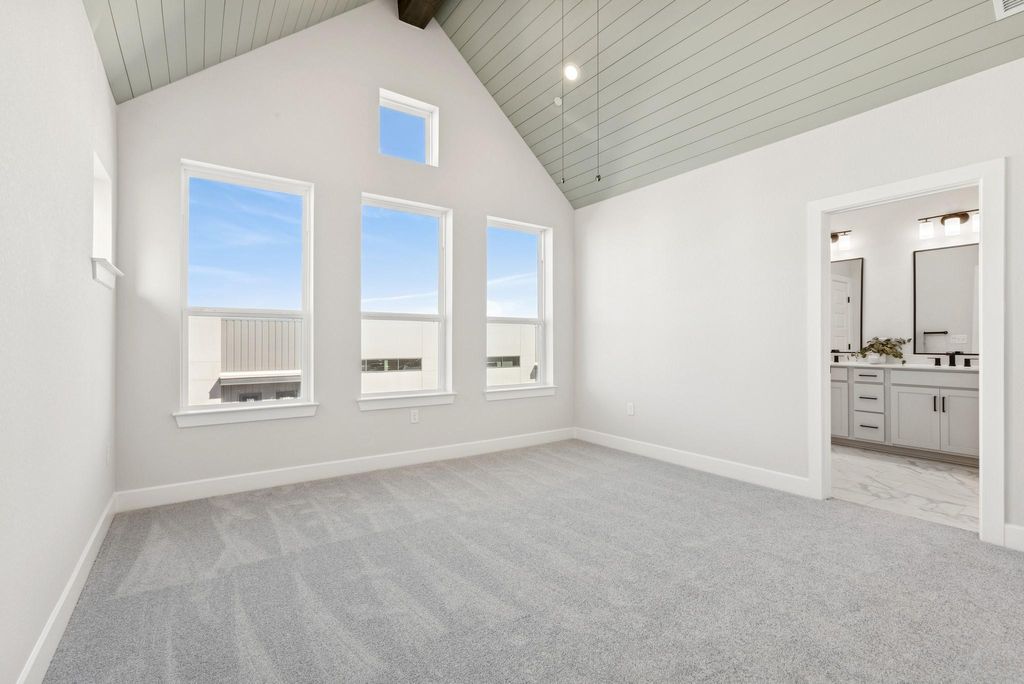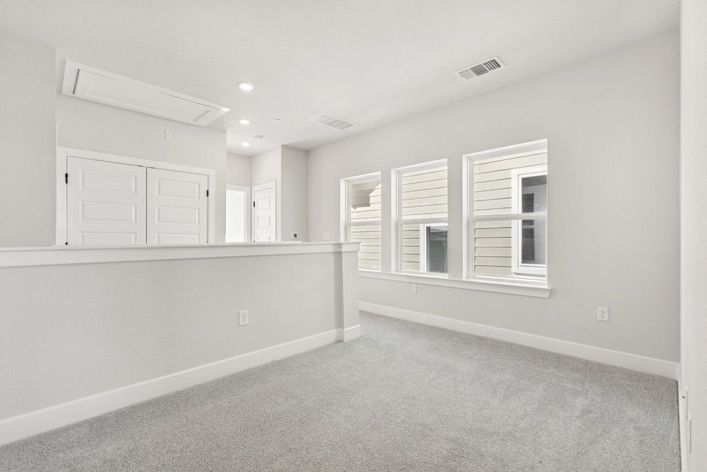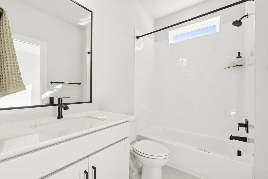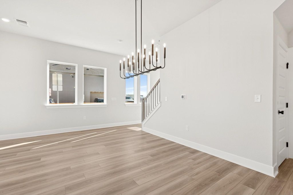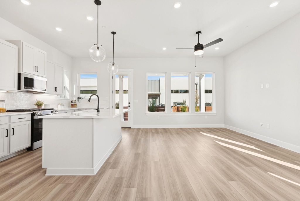 This quick move-in home in Goodnight Ranch stands with quiet confidence"”clean lines, rich contrast, and a bold front door hinting at something special inside. Step through the entryway and the home opens up"”bright, inviting, and unexpectedly spacious. The kitchen is the heart of it all, anchored by a statement island with quartz countertops and surrounded by designer finishes that feel anything but standard. Crisp white cabinetry, warm wood-look floors, and thoughtful lighting give the entire space a curated feel. Upstairs, the owner's retreat is just that"”your personal escape. A spacious loft adds flexibility for a home office, workout zone, or media space, and two additional bedrooms are tucked away for guests or hobbies. Every corner feels considered, from the walk-in closet to the oversized shower in the owner's bath. The best part? Low-maintenance living means more time for real life. Weekends are for trail walks, local bites, and evening wine on the covered back porch"”not yard work. You're in a quiet, master-planned community with a real sense of neighborliness, yet just minutes from the culture, food, and energy of Austin. This isn't just a place to live. It's a place to belong. Call the David Weekley Homes at Goodnight Ranch Team to learn more about the stylish selections of this new home in Austin, Texas! This Community also has Outdoor Fitness Stations. Our EnergySaverâ„¢ Homes offer peace of mind knowing your new home in Austin is minimizing your environmental footprint while saving energy. A David Weekley EnergySaver home in Austin averages a 60 on the HERS Index. Square Footage is an estimate only; actual construction may vary.