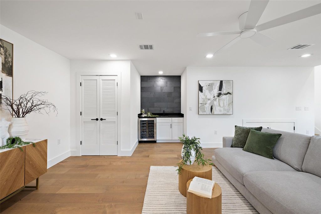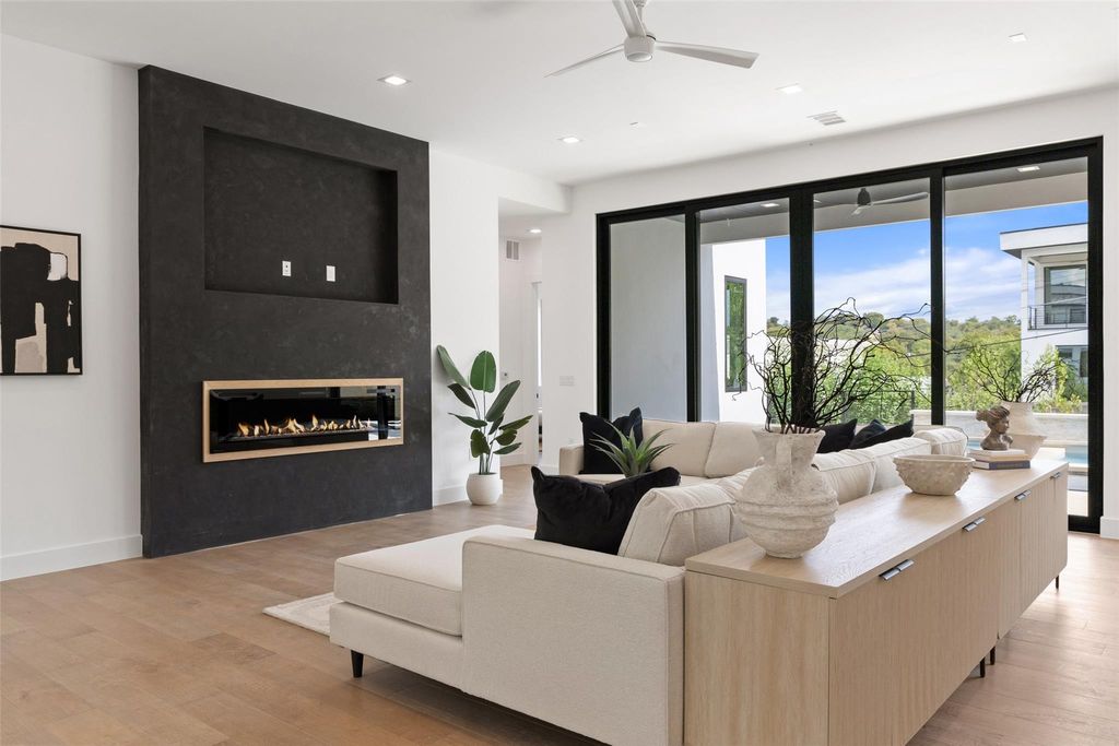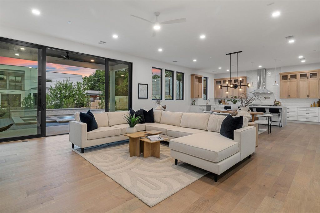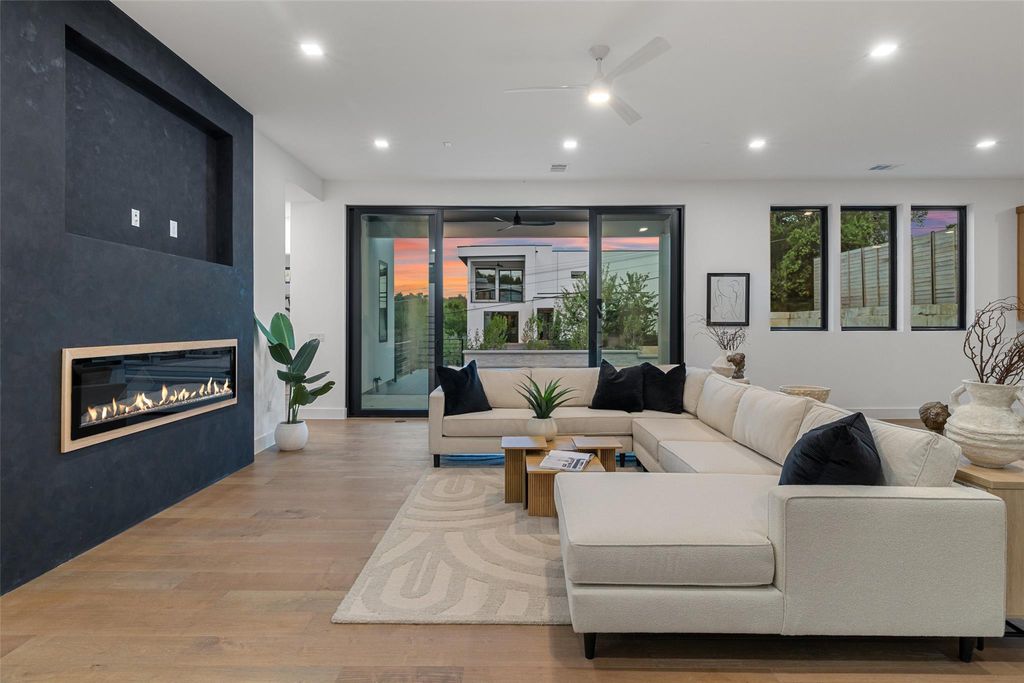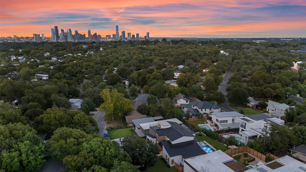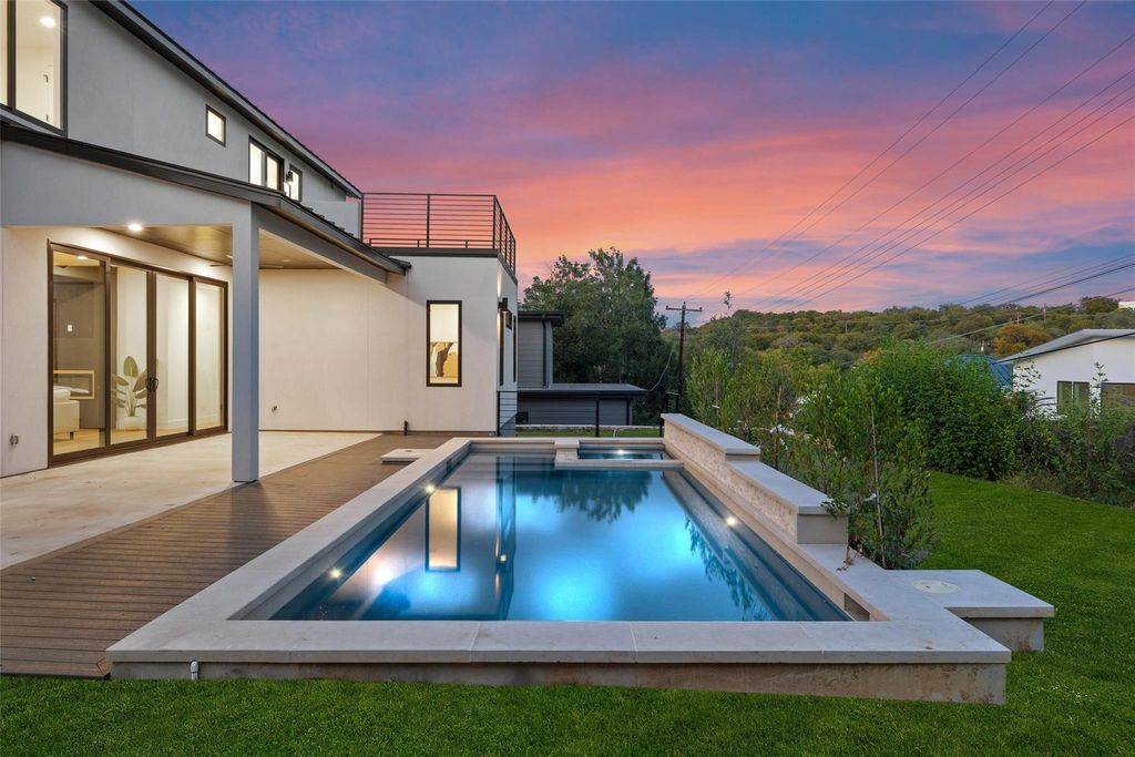 Step into this 3 level contemporary gem where sophistication meets everyday living. This bright, open floorpan flows effortlessly thanks to expansive picture windows, warm hardwood floors and a neutral pallet of light wood finishes. On the entry level, a gourmet kitchen with energy efficient appliances, oversized front office, and primary retreat with direct access to a marbled spa-inspired bath showcasing a custom closet, soaking tub, and attached utility room. Remaining bedrooms and additional living space including convenient wet bar all located upstairs. Bonus flex room on third level includes terrace with scenic views of Barton Creek Greenbelt! Enjoy an outside private oasis with sparkling pool and spa combo "” perfect for summer days and fall evenings! Design-forward lighting and sleek hardware elevate every corner. Inside and out, this home is crafted for both effortless gatherings and serene daily life.