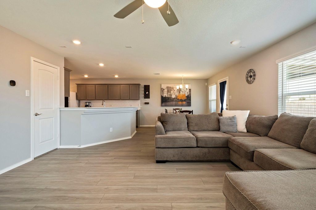 Welcome to this beautifully maintained home in the highly sought-after Presidential Meadows neighborhood of Manor. This like-new, pet-free home is bright, open, and move-in ready"”offering the perfect blend of modern design and practical living. Step inside to find durable and stylish vinyl flooring throughout the main level, creating a warm and cohesive look. The open-concept layout flows effortlessly, making it ideal for both entertaining and everyday life. The spacious kitchen features sleek Silestone countertops, freshly painted cabinets, and ample counter space"”perfect for cooking, hosting, or enjoying your morning coffee. With thoughtful upgrades throughout and meticulous care from its owners, this home is truly better than new"”without the delays, surprises, or extra costs that often come with new construction. Enjoy your evenings under the covered back patio, ideally shaded thanks to the west-facing front of the home, allowing for year-round backyard comfort. Located in a prime spot within the community, this home is just minutes from the soon-to-open HEB, with quick access to local schools, parks, and major highways. You'll love the peaceful setting away from Highway 290, while still being close to everything Manor and the surrounding Austin area have to offer. A $4,000 buyer credit is available with the use of the preferred lender"”contact us today for more details. This is an awesome home at an awesome price. Don't miss your chance"”schedule a showing today!