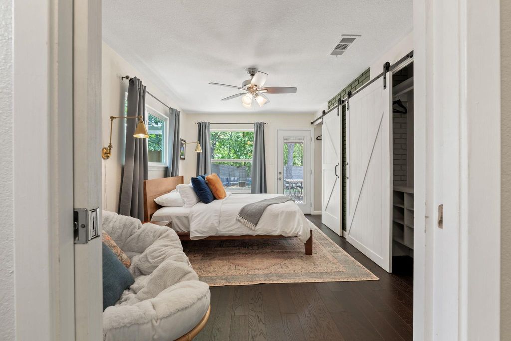 Welcome to your stylish retreat in one of Central Austin's most beloved neighborhoods, North Shoal Creek/Northtowne! Just minutes from The Domain, Q2 Stadium, and the vibrant Burnet Road scene, this home offers the perfect blend of relaxed living and urban accessibility. From the moment you arrive, you'll be drawn in by the beautifully manicured front yard and refreshed landscaping that sets the tone for what's inside. A thoughtfully updated walkway leads you to a bright and welcoming interior where natural light pours in through oversized and updated windows, dancing across rich wood flooring. Designed for connection and comfort, the open-concept living and kitchen area is perfect for everyday living and entertaining alike. The kitchen shines with stainless steel appliances, ample cabinet and counter space, a breakfast bar for casual dining, and a built-in wine fridge to elevate your hosting game. Gather around the fireplace in the cozy dining space for meals and memories. The private primary suite is your personal haven. Tucked away from the other bedrooms, it features a beautifully appointed ensuite bath, custom closets, and direct access to the backyard for peaceful mornings or evening unwinding. Three spacious secondary bedrooms offer endless flexibility"”perfect for family, guests, or work-from-home setups. They share a sleek, modern bathroom with a dual sink vanity with ample counter space and a tub/shower combo. Step outside to your oversized backyard retreat featuring a stone patio with trellis, built-in fire pit, garden bed, and expansive green space"”ideal for al fresco dining, weekend lounging, or playtime under the Texas sky. Just steps from Pillow Elementary and with no HOA, plus quick access to Mopac, 183, and all the local favorites, this home offers an unbeatable location for commuters, creatives, and community lovers alike.