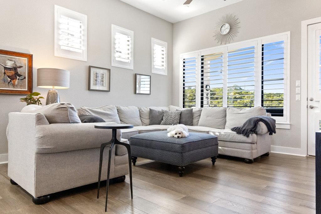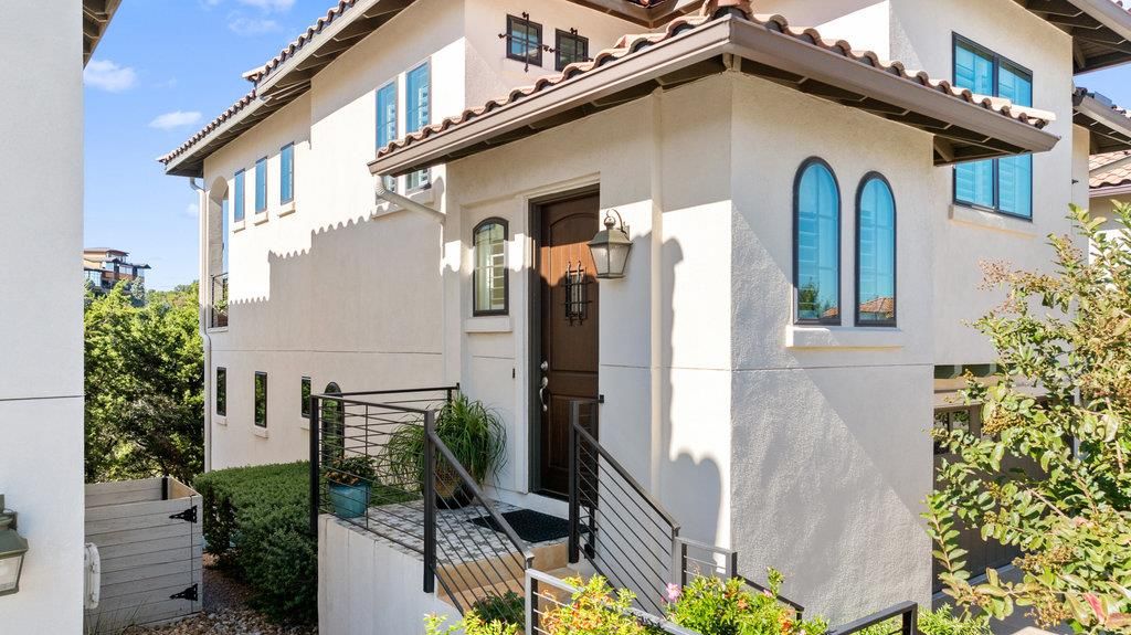 Welcome to this Beautiful Santa Barbara-style home! The curb appeal is unbeatable with stained concrete driveway and lush landscaping that is maintained by the HOA. Come inside to this stylishly appointed interior with beautiful hardwood floors, silestone counters in the kitchen, beamed ceiling's and soft whisper grey-paint throughout. Upgrades include custom wood shutters, recirculating hot water, custom cabinetry / door and fixture updates, large secondary bedrooms, loads of storage, and a utility/ MUD room and so much more. This property features a beamed-tray ceiling in kitchen with stainless steel appliances and breakfast bar for intimate gatherings. Retreat to the luxurious master suite with full bath complete with a spa-style shower, dual vanity and large walk-in closet. This property features a private balcony with European tile perfect for entertaining. Conveniently situated just moments away from the Hill Country Galleria with dining ,shopping and numerous entertainment options. Discover a wonderful level of sophistication at every turn surrounded by Texas Hill Country views!