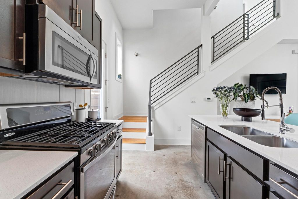 The best of both worlds - location + style. This 2BDR, 2BATH modern and private home is located in the sought-after Brentwood/Crestview neighborhood. Within close distance to Bird Bird Biscuit, Brentwood Social House and Little Deli. Soaring ceilings and loads of windows create great natural light and a feeling of space, with views of trees and sky from every window. Open concept living/kitchen/dining. Primary bedroom features a built-in dresser by California Closets along with a well appointed ensuite on the main floor complete with a walk-in closet that's been outfitted with a custom closet from California Closets. Spacious, walk-in shower with frameless glass. Concrete floors throughout the lower level. A second bedroom and full bath on the second level is the perfect set-up for a home office, guest room, second bedroom or all of the above. This bedroom's closet features a custom closet from California Closets as well, to maximize the space. New HVAC in 2025 and a new roof in 2024, as well as landscaping and automatic sprinkler system round out a 100% peace-of-mind home. Full-size washer/dryer in the single-car garage with plenty of space for your car and storage. While this unit shares a large lot with another home, it is completely detached with its own private drive and fenced yard.
