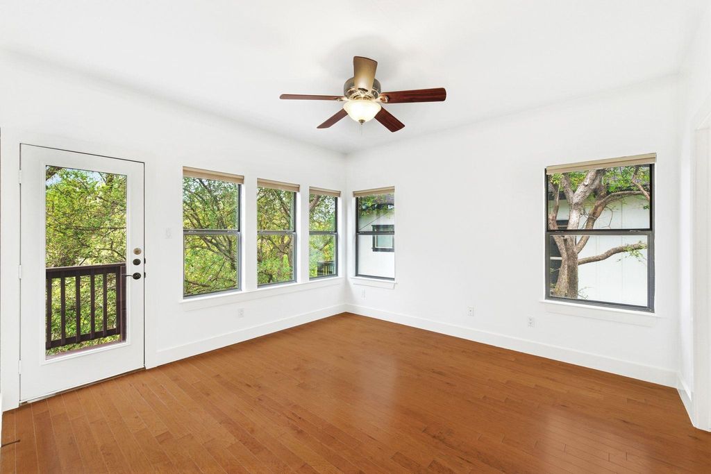 High-quality, move-in ready, close-in 2-2.5 loaded with features. Fresh interior paint! Open Kitchen w Granite island and plenty of cabinets. SS appliances w Refrigerator, Gas Range & built-in Microwave. Half-bath down. Under stairway storage. Double adjoining downstairs living areas. Flex Living Room upstairs. Washer/Dryer included. Master Bath with double sinks. No tubs, all showers. Walk-in closets. Ceiling fans. Tall ceilings. Solar panels for low bills. Upper, lower decks with a roomy Storage Room. Close to the Mueller Development!