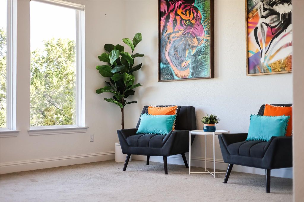 The Artist's Masterpiece! This home is a living canvas, designed and adorned by a renowned artist who has painted across the globe. From custom artwork that graces its walls to intricate, personalized touches like unique cabinet pulls and bespoke light fixtures, every corner of this home exudes creativity and elegance. Set in The Hollows, this home is a rare gem surrounded by unparalleled green space. Beyond the expansive side yard lies a lush natural oasis that stretches past the backyard, offering an extraordinary level of privacy and tranquility. Its award-winning Coventry floor plan is both functional and breathtaking, with spacious open areas, abundant natural light, and thoughtfully designed storage. Step outside and immerse yourself in nature with direct access to hiking trails, a network of sidewalks, and a vast open private field perfect for sports, outdoor play, or simply enjoying the fresh air. A short walk to one of the community pools, playgorunds, basketball and pickleball courts! This home seamlessly blends artistic brilliance with the serenity of the great outdoors, making it a true one-of-a-kind treasure.