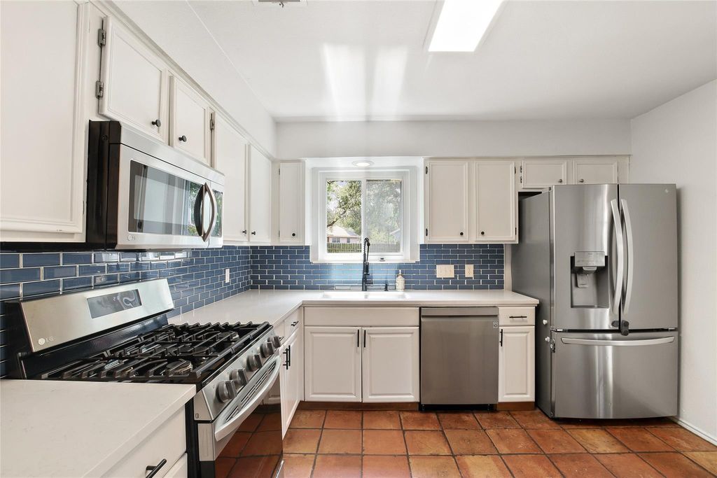 Step into this charming, updated home in North Austin, where you'll be welcomed by beautiful landscaping that boosts the home's curb appeal and sets a warm, inviting tone at the entrance. This delightful home features a spacious open floor plan and includes a rare fourth bedroom, ideally suited as a private office or guest room set apart from the other bedrooms for added privacy. The interior boasts luxury vinyl plank flooring in the main living areas and bedrooms, complemented by tile floors in wet zones for a stylish yet low-maintenance living experience. The kitchen shines with sleek, updated quartz countertops, a modern subway tile backsplash, a pantry, and stainless steel appliances. Both bathrooms have been modernized with updated vanities, lighting, mirrors, and faucets for a contemporary touch. The living space boasts high ceilings, added windows for abundant natural light and a cozy fireplace, perfect for gatherings. Outdoors the generous lot provides a serene setting for relaxation or entertaining on your deck, surrounded by mature oak trees. Nestled in the coveted Milwood neighborhood, this home is perfectly positioned for convenience and lifestyle. You're just minutes from a variety of excellent dining options, Starbucks, HEB, a pharmacy, and vibrant nightlife spots. Enjoy the ease of walking to Apple, while also benefiting from quick commutes to major employers like IBM, Samsung, Dell, Visa, Facebook, the Domain, and Whole Foods. Zoned to the nationally acclaimed Westwood High School, one of Austin's best, this location is ideal for families. Located just 18 miles from downtown Austin, you're perfectly positioned to enjoy everything the city has to offer. Refrigerator, washer and dryer can convey with a strong offer. Don't miss out on experiencing Austin living at its best!