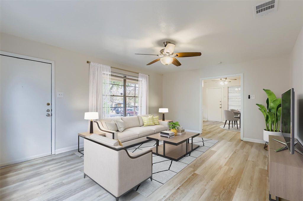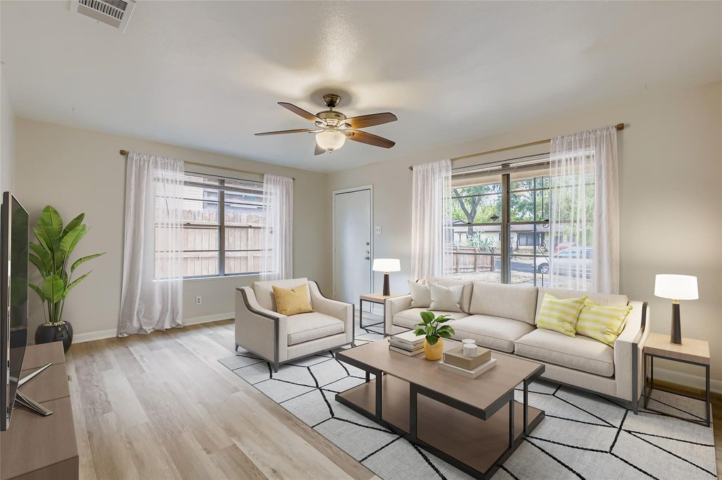 Recently refreshed and ready for you! This classic 60's all brick ranch-style house has all the vintage vibes with modern updating! 2025 improvements include new roof with 10 year warranty, minor foundation work with lifetime warranty, all new LVP floors throughout, interior and exterior wall work, and a brand new dual-pane sliding door to the backyard where none previously existed. Rooms are all large, bright and sunny, and each one has a ceiling fan for your comfort to supplement the nice cold central AC. Kitchen is spacious, with plentiful cabinets, gas stove, and a window overlooking the front yard. Vintage pink tile graces the bathroom, which features extra storage space and natural light. Parking is a breeze on a long driveway with 1 car covered carport. Washer and dryer connections are in the carport, offering plumbing for a possible future 2nd bathroom addition off the primary bedroom! The backyard is huge, fully fenced, and flat, with neighbor's trees providing nice shade but none in the way of potential opportunities to add a pool, guest house, and/or casita- whatever you can imagine! Fantastic neighborhood super close to Downtown Austin, UT campus, commuting on 183 to work or the airport. Prime location near Mueller and minutes to East Austin hotspots. Just steps from Blair Woods Preserve and close to Morris Williams Golf Course and Walnut Creek Greenbelt. Don't miss this chance to own a true 60s gem in a rapidly growing area - schedule your showing today! PROPERTY ELIGIBLE FOR MANY LENDER INCENTIVE PROGRAMS, INCLUDING 3% DOWN NO PMI, LOWER THAN MARKET RATES, DOWN PAYMENT ASSISTANCE, LENDER CREDITS, ETC! Ask agent for details about how we can make this work for you!