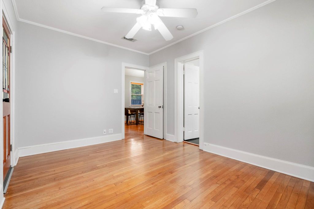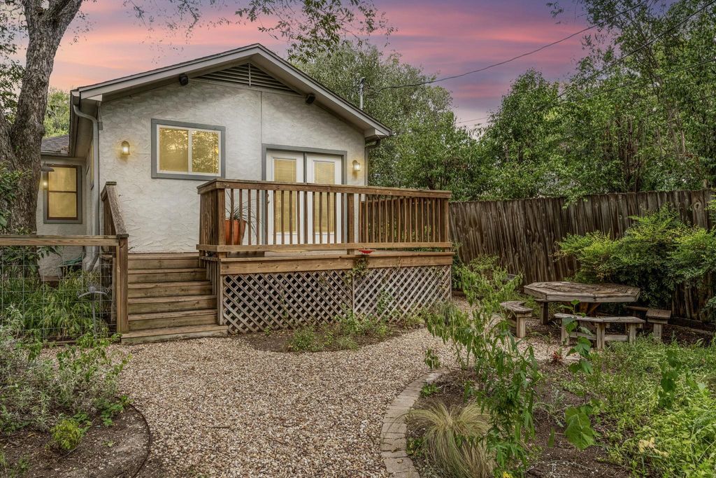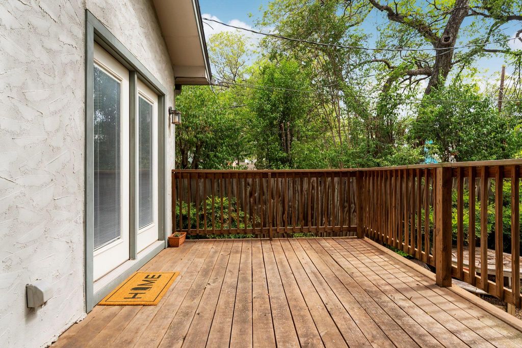 In a quiet stretch of Red River Street, this 1937 cottage is brimming with character inside and out. Lush greenery and a cobblestone path lead to a quaint front patio, where the home's charm begins. Original hardwood floors, stained glass accents, and vaulted ceilings bring timeless warmth to the open living and dining area, which flows naturally into the kitchen. Just off the main living area, two versatile rooms, (one with its own private entrance) offer flexibility for guests, work, or a creative studio, while a shared bath ties them together. The primary suite is tucked quietly at the back of the home, filled with natural light and features direct access to the deck and a private ensuite. Step outside and discover a raised deck that overlooks a yard shaded by mature trees, an intimate garden retreat in the middle of the city. Hyde Park's favorite coffee shops, dining, parks, and boutiques are just steps away, while UT and all of Central Austin's energy are only minutes from your door. This cottage is the perfect blend of history, charm, and walkable convenience. Buyer to verify all info.