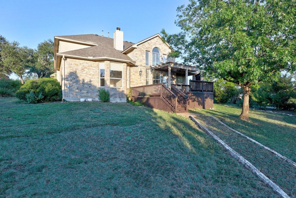 Set on 1.3 acres in the gated Grand Mesa at Crystal Falls, this 4-bedroom, 3.5-bath home feels private and serene while soaking up big Hill Country views. The main level has an open and flexible formal living and dining space plus an open family room, kitchen, and breakfast area. Vaulted ceilings and a fireplace make the family room inviting, while the kitchen gives you plenty of room to cook and gather. The spacious primary suite is also on the main level, with not one, but two walk-in closets (plus hidden storage) and a spa-style bath with dual vanities, a soaking tub, and a walk-in shower. Upstairs, you'll find three more bedrooms (all with walk-in closets), two full baths, and a loft that makes a perfect game room or hangout space. Step outside and you'll see what makes this home special. A raised deck provides sunset views that never disappoint, making it the perfect back drop when hosting gatherings. Below the deck, a paved patio awaits, currently set up with a chimenea that's perfect for chilly nights, but could easily be reimagined for grilling, dining, or however you love to enjoy the outdoors. Native wildlife wander through, from deer to wild turkeys, adding to the Hill Country charm. The three-car garage even includes overhead storage, giving you plenty of room for all your gear. Life in Grand Mesa means more than just a beautiful home. Known as a "Dark Sky" community, you can stargaze without streetlights. Residents also have access to top notch amenities that include parks, sports courts, trails, fishing ponds, and two centers with pools and playscapes. You'll also find an 18-hole disc golf course and a public golf course complete with clubhouse and restaurant. And when you're ready for the energy of the city, Austin's shopping and nightlife are close enough to enjoy, yet far enough away to escape the traffic. This is Hill Country living at its best, quiet, private, and surrounded by nature, yet close enough to enjoy everything Austin has to offer.