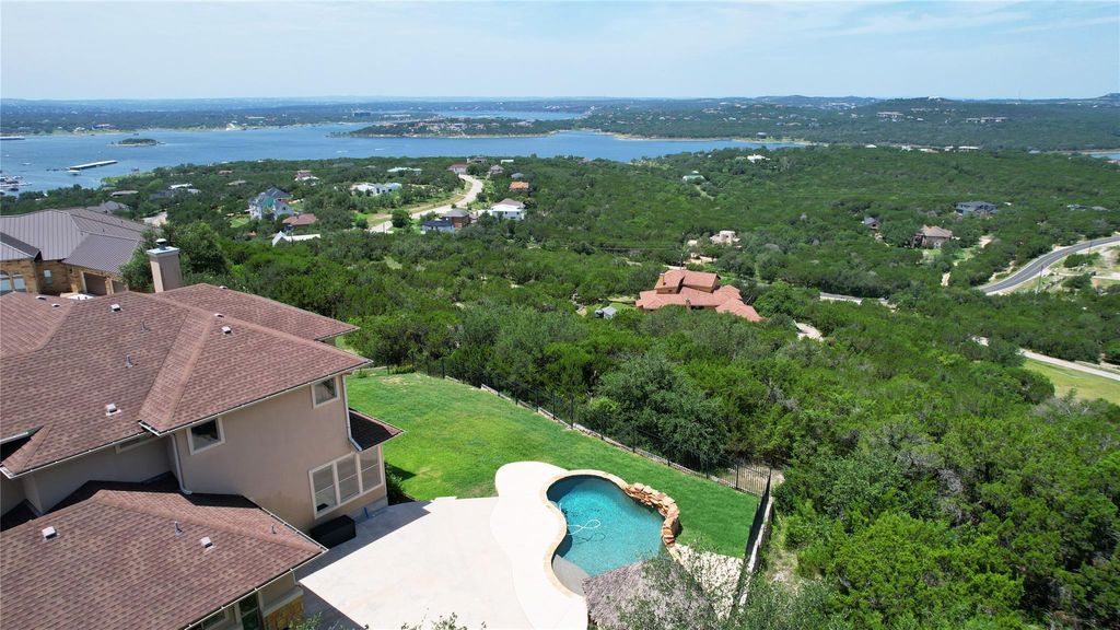 Massive Price Reduction! 8293 Lime Creek Road is a serene residence perched above the scenic landscape of the Texas Hill Country, overlooks the sparkling waters of Lake Travis, and sits next to a +/- 5,000-acre preserve providing peace of mind for no new build development. Enter the property through a privately gated driveway that gently winds and leads you to a traditional two-story home with sweeping panoramic views that begin in the foyer and carry through to the great room. Set on 5+ acres and thoughtfully designed with 4 bedrooms and 4.5 bathrooms, this home offers generous gathering spaces, including a formal dining room, breakfast area, and three separate living areas, one of which serves as a dedicated study. Outdoors, a private fenced-in backyard and sparkling pool with waterfall feature provide the perfect escape. A 3-car attached garage completes this classic Hill Country retreat. This property is available for purchase separately or together with its neighbor located at 8295 Lime Creek Road (MLS #9123782). See Agent for details.