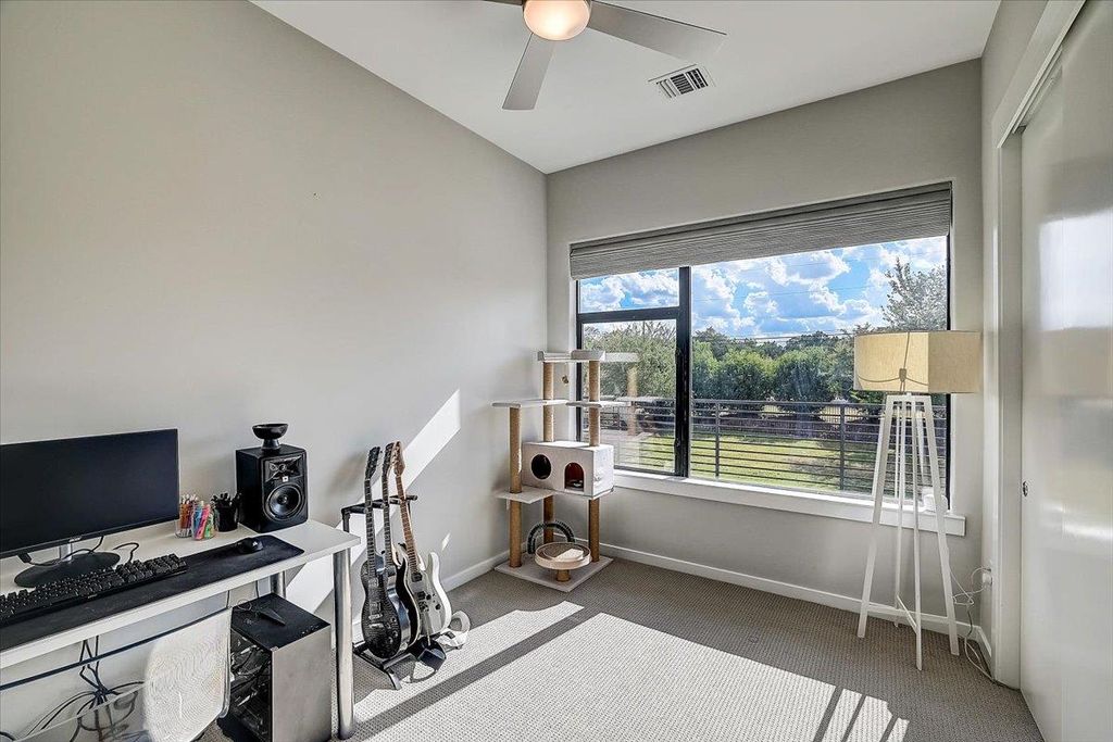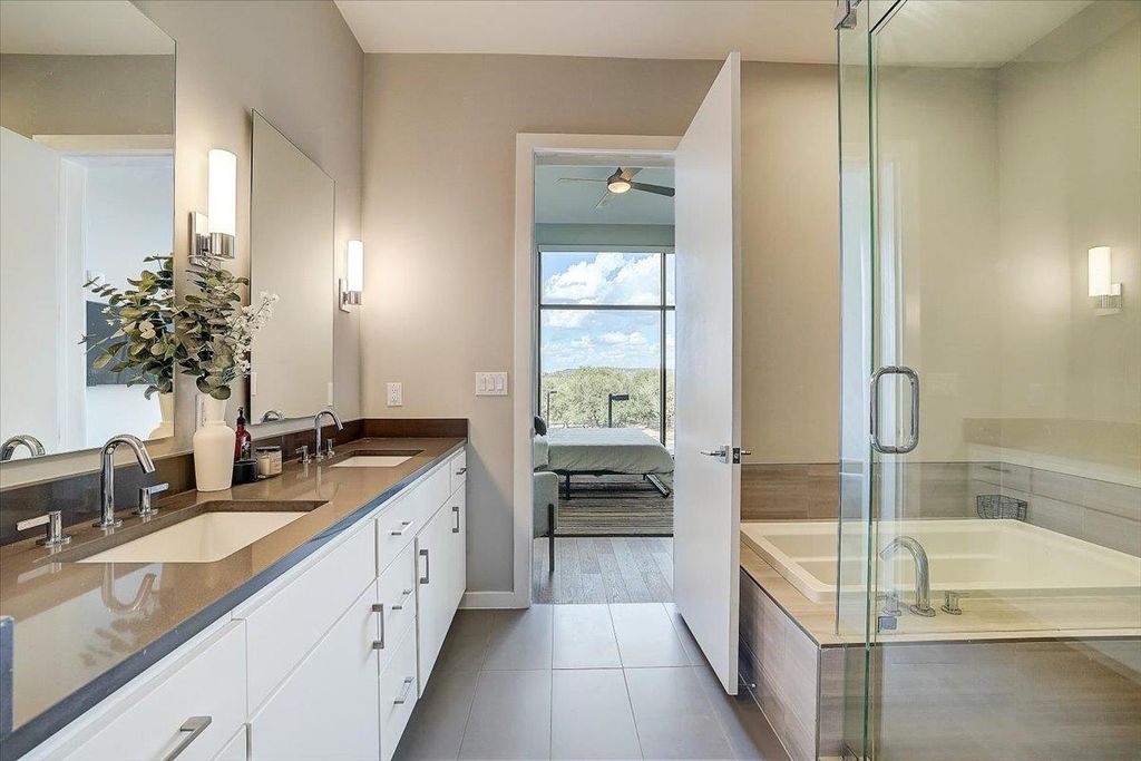 Enjoy private, lake front living in this premium waterfront luxury complex. This spectacular unit boast tall ceilings with track and recessed lighting, floor to ceiling windows facing the beautiful Lake Travis sunrise, 3 bedrooms equipped with remote controlled electric blinds, and 2 full bathrooms. Primary bathroom features dual vanity sink, large tub with separate, glass enclosed, walk in shower, dual closet space, and built in dresser and shelves. Primary bedroom is equipped with wrap around floor to ceiling windows, offering a perfect view of both the fenced pool and 14 acre common area/park leading to 950 ft of Lake Travis frontage. The Waterfall on Lake Travis is the perfect lock-and-leave lake community, or your next waterfront forever home. No short term rentals allowed. Lease terms minimum 12-months.