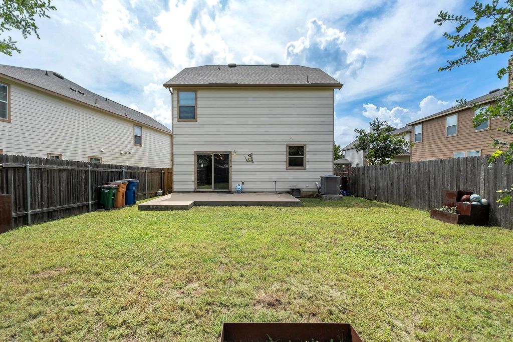 Welcome to this beautifully maintained 2-story home located in a quiet, established neighborhood"”just minutes from major tech employers and with easy access to 290, I-35, and 130! This spacious 2,068 sq. ft. home features 3 bedrooms, 2.5 bathrooms, and a versatile upstairs loft that can easily be transformed into a game room, movie lounge, or home office. The open-concept floor plan offers excellent flow, with an updated kitchen that overlooks a large family room"”perfect for entertaining or cozy nights in. Enjoy elegant crown molding throughout and stunning tile flooring that adds warmth and charm. The laundry room is conveniently located on the main floor and includes a high-efficiency washer and dryer. Upstairs, the oversized primary suite includes a walk-in closet and an en-suite bathroom. Two additional bedrooms and a full bath round out the second level. Step outside to a private, fully fenced backyard with a covered patio"”ideal for relaxing evenings or weekend barbecues. Don't miss your chance to tour this wonderful home"”schedule a showing today. You won't be disappointed!