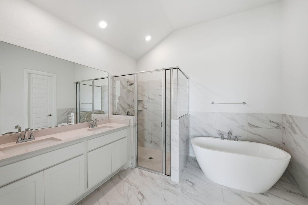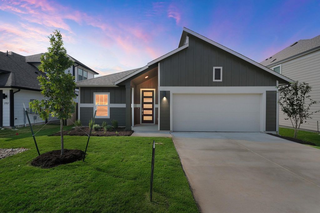 Welcome to GFO Home's Beautiful Brand New One-Story Monroe floorplan from our upscale Freedom Series in the Eco-Friendly and Amenity-Rich Neighborhood of Whisper Valley. This spacious home boasts 3 bedrooms, 2 bathrooms, and a 2-car garage. With elegant Revwood Flooring, stunning Quartz Countertops, High 11 ft Ceilings, and 8ft Doors throughout, this luxury home also includes highlights like a Private Study or additional Flex Bonus Room, an Open Concept Family Room, and Upgraded Gourmet Chef's Kitchen with a Center Island, 30" cooktop, and attached Breakfast Area, as well as a Formal Dinning Room or additional Bonus Space. Enjoy a spacious Covered Patio leading out to the Private Backyard with no rear neighbors, and a luxurious Primary Bedroom with an Upgraded spa-inspired Primary Bathroom featuring a designer Freestanding Soaking Tub and large Walk-in Closet. This home also includes Sustainability Features like Solar Panels, Geothermal HVAC, and an EV Charging Outlet. Experience high-end living at its finest with the Monroe floor plan in the beautiful & scenic Community of Whisper Valley with a vibrant Amenity Center, Resort-Style Pool, Fitness Center, and more! Estimated Completion mid-September!