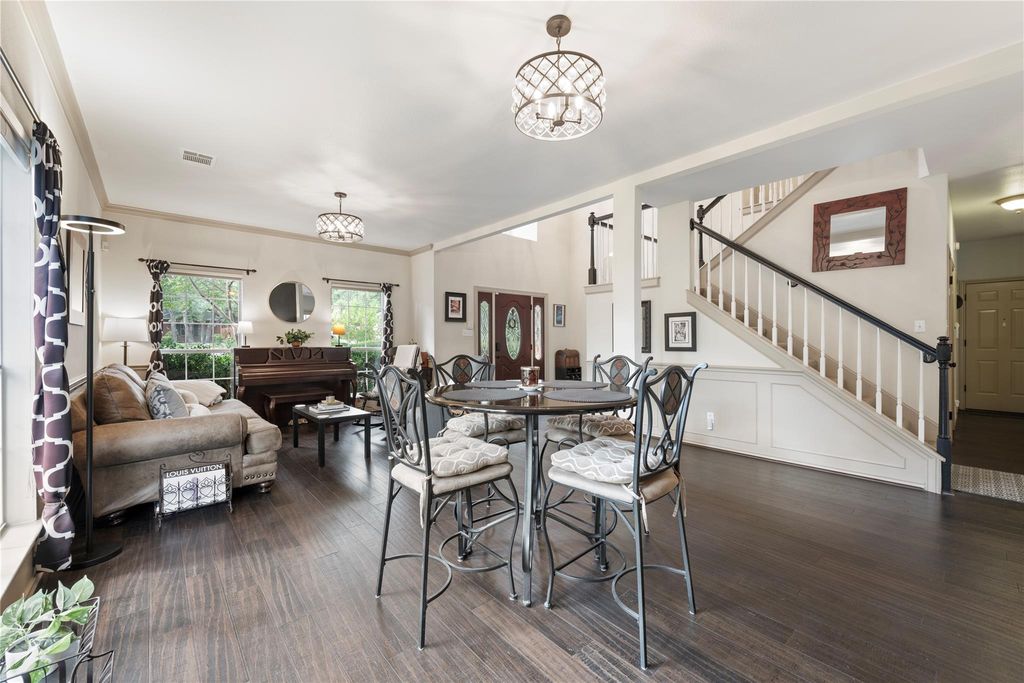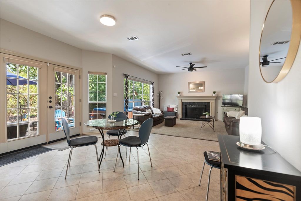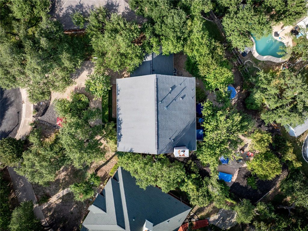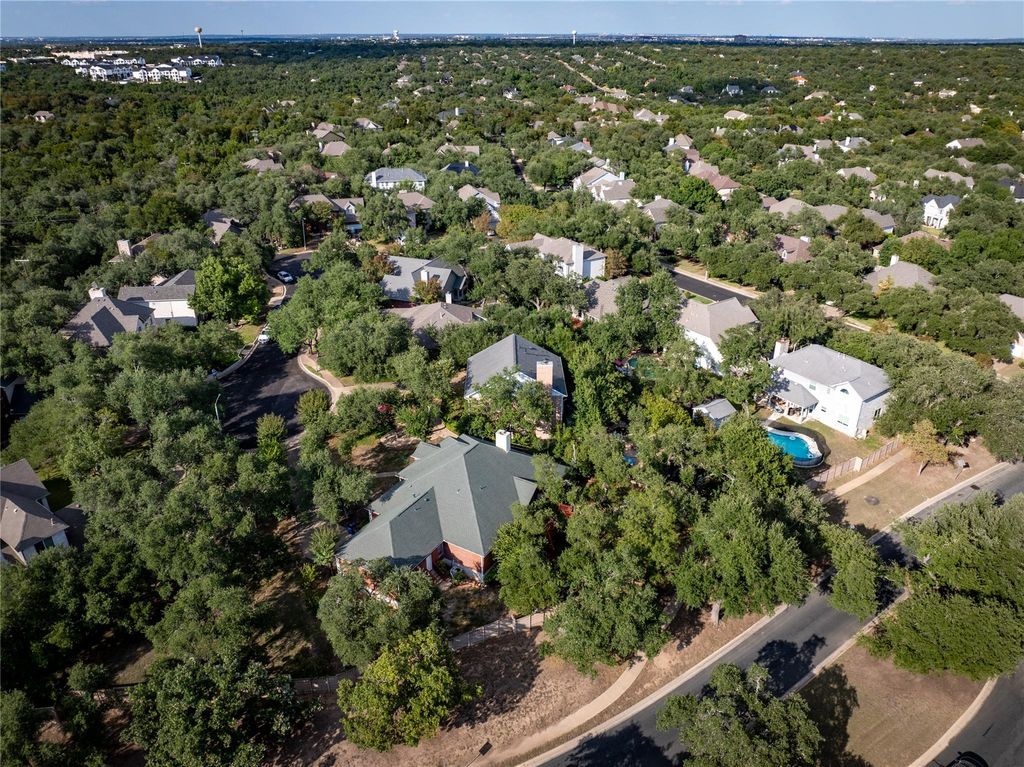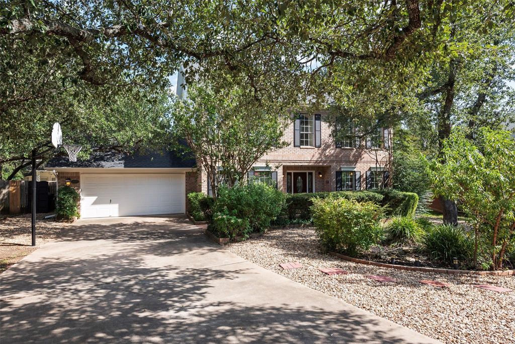 Located in one of the most serene, park-like sections of prestigious Canyon Creek, this stately two-story brick residence sits graciously on a heavily wooded cu-de-sac lot, offering privacy, beauty and charm. Step inside to a grand formal living and dining, anchored by elegant columns and designed for both entertaining and everyday comfort. The updated kitchen is a culinary delight, featuring gleaming granite countertops, a stylish tile backsplash, and a custom decorative design about the cooktop that adds a touch of sophistication. A versatile downstairs secondary bedroom with a full bath is ideal for multi-generational living, a private guest suite, or a quiet home office. Outdoors, a serene backyard sanctuary awaits. Nearly a third of an acre, this generous lot offers multiple gathering spaces shaded by mature trees. Whether enjoying a quiet morning coffee, hosting friends on the patio, or unwinding in the bubbling hot tub, every corner invites relaxation and connection. Adding to the appeal is the coveted Canyon Creek lifestyle. Just a short stroll to the community pool, tennis and pickleball courts, and miles of walking and nature trails, this neighborhood is a fitness and nature lover's paradise. With easy access to Highway 620, low HOA fees, and nationally ranked schools, you'll enjoy the perfect balance of convenience, recreation, and top-tier education. Meticulously maintained and move-in ready, this residence blends timeless elegance with everyday livability, a true Canyon Creek treasure waiting for its next chapter.