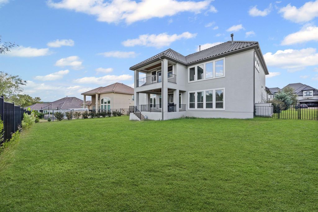 Stunning Taylor Morrison Toscany Floorplan in The Grove at Steiner Ranch. Discover luxury living in this beautifully designed home, featuring high-end finishes, rich textures, and premium materials throughout. Located in the highly coveted gated community of The Grove at Steiner Ranch, this residence sits on a spacious lot backing to a serene greenbelt, offering privacy and breathtaking views. Step inside to an impeccable layout showcasing gorgeous wood floors, recessed lighting, and abundant natural light. The expansive rooms provide both comfort and elegance, while the chef's kitchen is a true showstopper"”equipped with a gas range, an oversized island ideal for entertaining, and ample storage space. Enjoy multiple outdoor living areas designed for relaxation and entertainment, including a balcony overlooking the lush greenbelt, a large covered patio perfect for gatherings, and a private courtyard where you can unwind under the stars. Located in a top-rated LISD school district, this home also provides access to the exclusive amenities of Steiner Ranch.