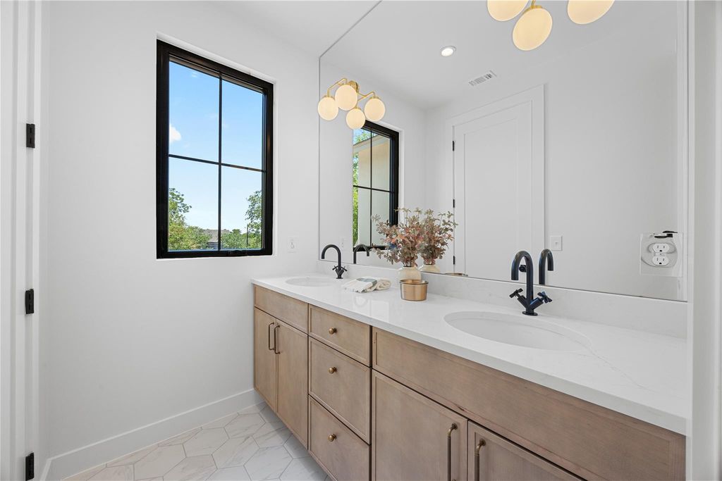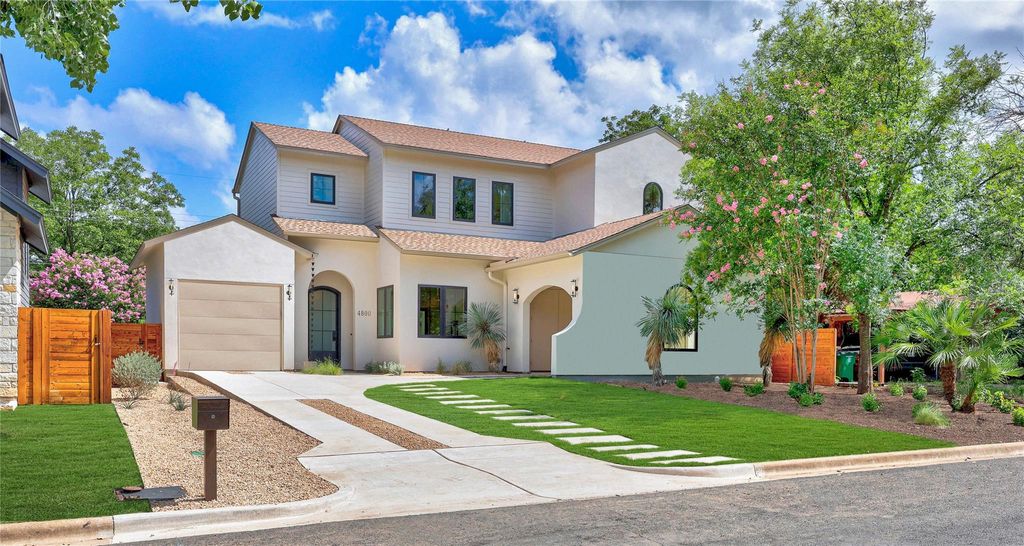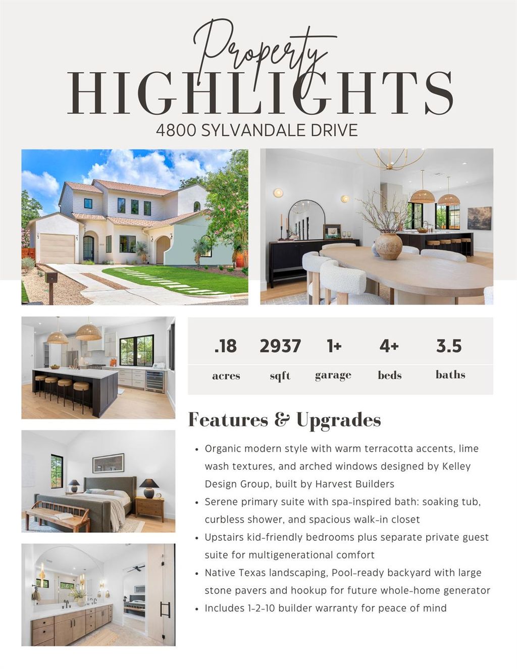 Live the Organic Modern Lifestyle in This Thoughtfully Designed South Austin Home in 78745. Designed by Kelley Design Group and built by Harvest Builders, this 2,937 sqft stucco home embodies the warmth and texture of organic modern style, with terracotta accents, soft lime wash finishes, and arched windows that soften clean lines and fill the home with natural light. Inside, 4 bedrooms plus a dedicated office offer flexible space for modern living. The serene primary suite features a spa-inspired bath with soaking tub, curbless shower, and a well-organized walk-in closet. A chef's kitchen with walk-in pantry flows into the sunny dining room and efficient mudroom/laundry, making everyday life feel seamless. Upstairs, two connected bedrooms share space for kids, while a separate guest suite provides privacy for visitors or multigenerational living. A one-car garage plus a carport"”easily convertible to additional enclosed parking"”offers flexibility for storage, hobbies, or future expansion. Step outside through the three-panel Anderson slider to a private backyard oasis. Native landscaping, large stone pavers, and a grilling patio create a peaceful setting for play, entertaining, or quiet relaxation. The yard is pool-ready, and a generator hookup adds peace of mind. With a 1-2-10 builder warranty from Harvest Builders, this home offers a timeless blend of design-forward living and everyday functionality.