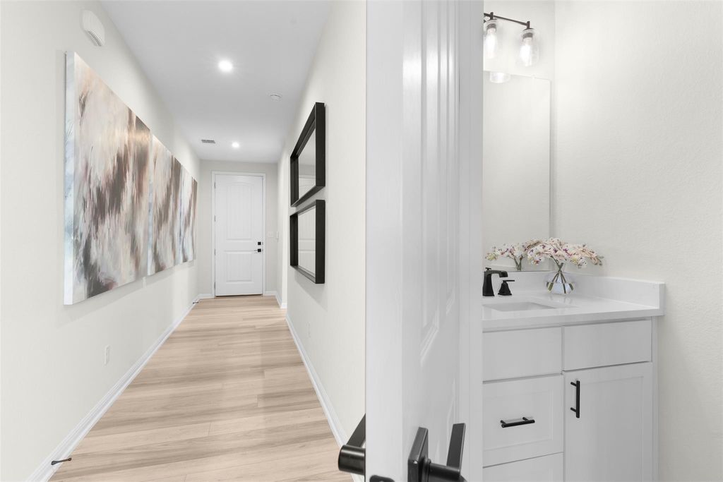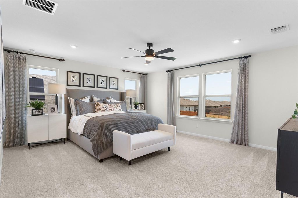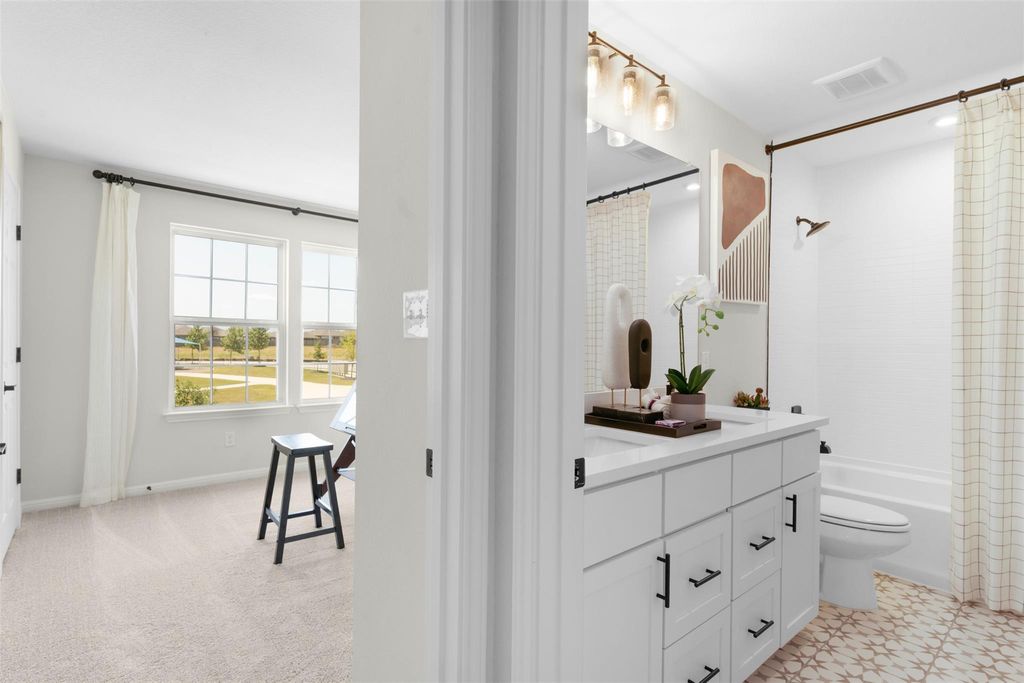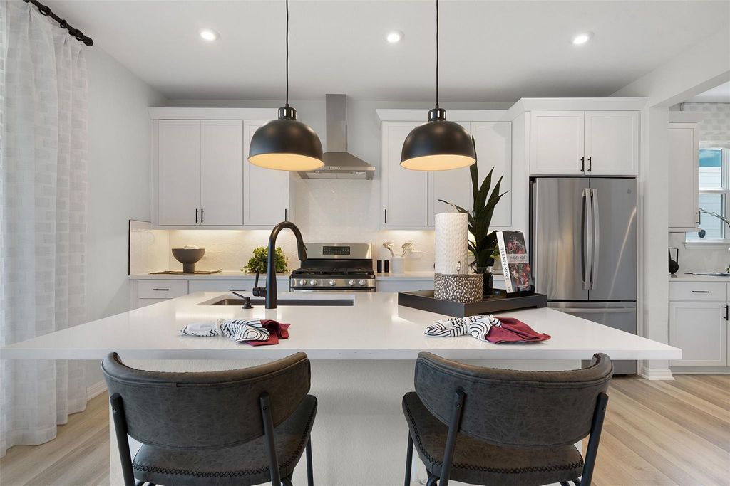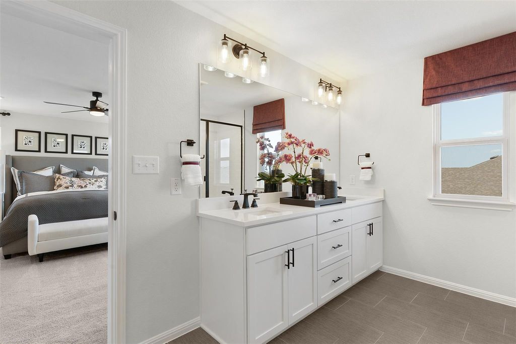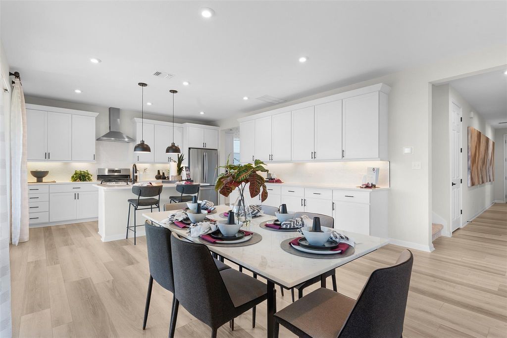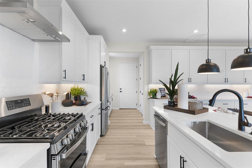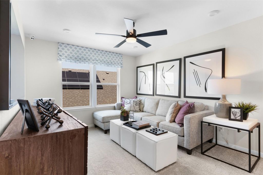 Our stunning Ammolite Model is a show stopper. This home is full of upgrades! Home comes with ALL appliances. First floor has a gen suite. Gen suite includes a living area, bedroom, and bathroom on the front left side of the home. Great for a teenager, parents, or guests! As you walk down the hallway prior to going into the kitchen there is a half bathroom on the left hand side. The home has The kitchen offers an island, pendant lighting, upgraded backsplash, with our extended cabinetry in the kitchen & ample amount of counter space. Home also features, cabinetry in the mud room. 8' double glass sliding doors leads to covered back patio into spacious back yard. Upstairs you'll find 3 secondary bedrooms, and a generous sized loft. The primary bedroom is truly a dream! The primary bedroom has a large closet and fully upgraded bathroom including double sinks. Laundry room is upstairs for convenience and has cabinetry and a sink!