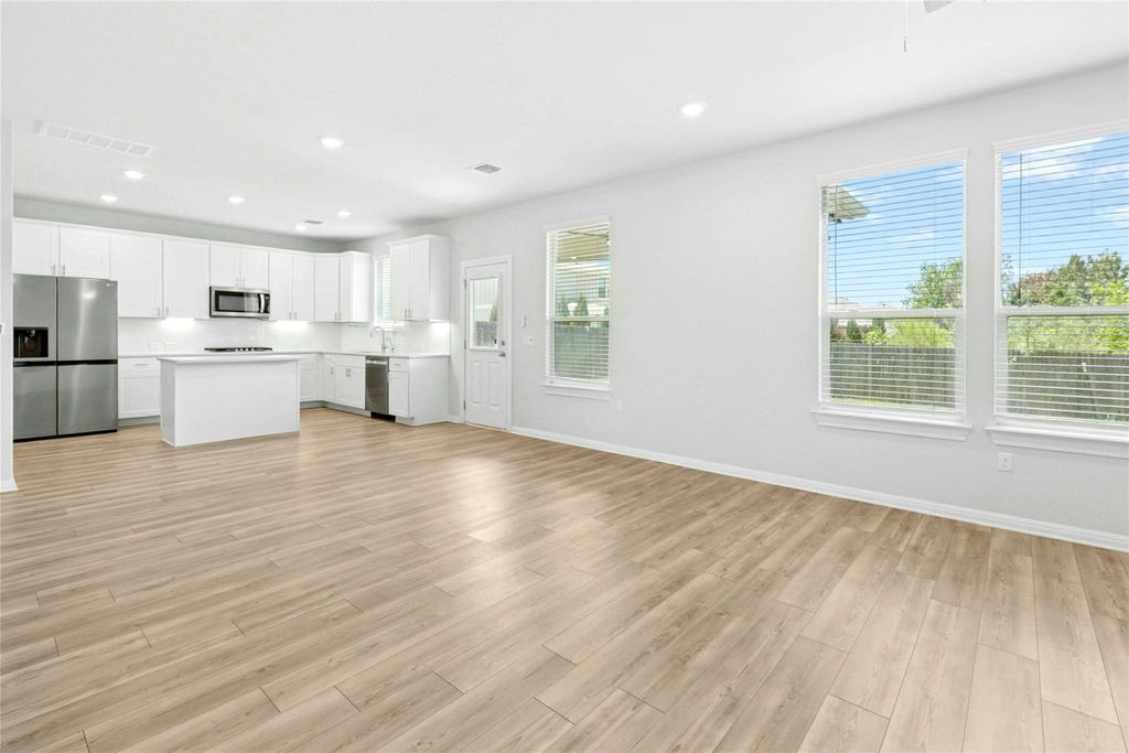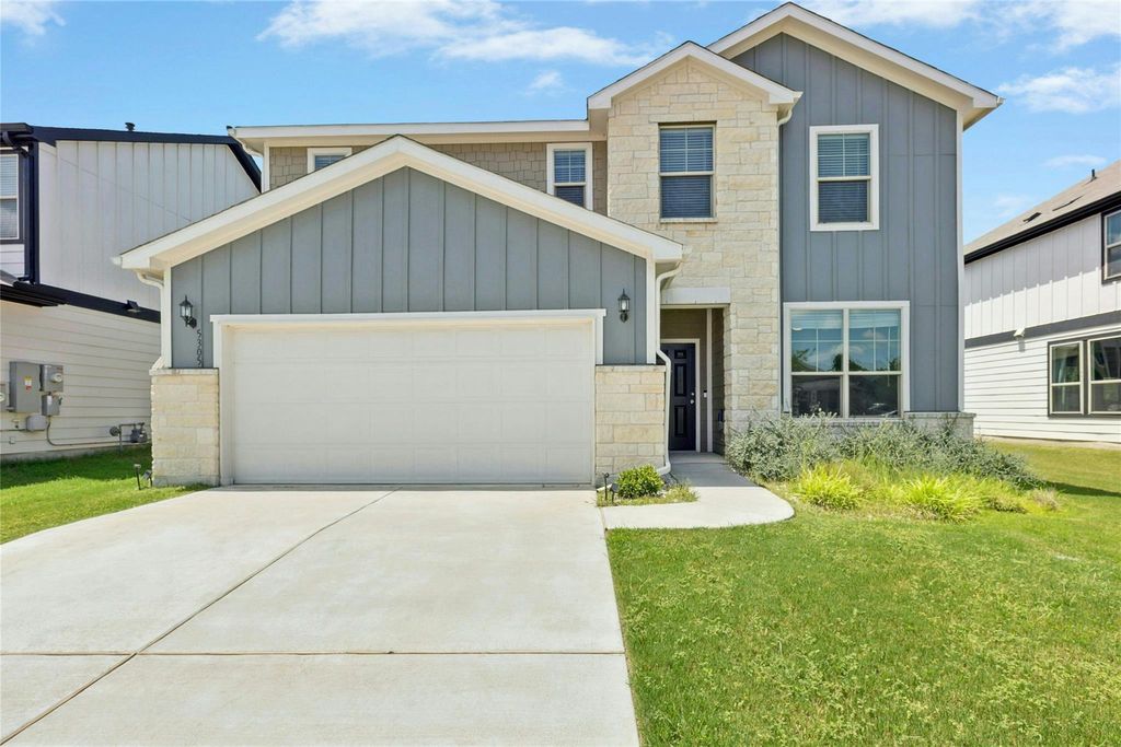 $10k of instant equity and 5.875% interest rate available! Experience captivating modern living in this impeccable 4-bedroom, 2.5-bathroom home with dedicated office, situated in a quiet cul-de-sac within East Parke's master-planned community. This luxurious 2022 Pulte-built home showcases 2,297 square feet of thoughtful upgrades and stunning finishes throughout. Step inside to discover an inviting open-concept layout featuring beautiful luxury vinyl plank flooring, granite countertops, and abundant natural light. The spacious living area flows seamlessly into the gourmet kitchen with stainless steel appliances, under-cabinet lighting, and convenient reverse osmosis system - perfect for entertaining friends or cozy family nights. Tech-forward connectivity includes upgraded CAT6 Ethernet ports in every room plus ceiling-mounted connection in living room, with AT&T Fiber internet access ensuring flawless remote work and streaming. The dedicated downstairs office offers an ideal work-from-home setup with beautiful natural light. Your private outdoor oasis features a covered patio overlooking serene woods with no rear neighbors - rare tranquility for morning coffee or weekend gatherings. The extra-long driveway and two-car garage accommodate four vehicles with ease. Unbeatable Austin location - just 15 minutes to UT, Downtown Austin, The Domain, and Mueller, with convenient Highway 183, Highway 290, and airport access. East Parke residents enjoy walking trails and maintained community spaces. Move-in ready perfection with approximately $10,700 in upgrades, builder's warranty conveying, and all appliances included. This rare opportunity combines like-new condition with premium connectivity in one of Austin's most desirable communities.