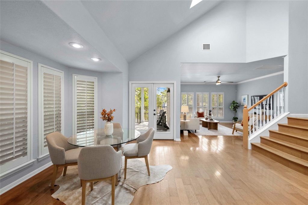 Move-in ready and perfectly located, this South Austin gem sits within the gated Towne Court community, offering peaceful, low-maintenance living in the heart of 78745. Enjoy unbeatable convenience directly across from Summer Moon Coffee, with local restaurants, Sprouts, and everyday essentials just steps away. This charming stand-alone condo lives like a single-family home and has been thoughtfully updated with a new roof and exterior paint (Feb 2025), plus new landscaping and fencing (July 2025). Set on a tree-lined street of colorful homes, it features a two-car garage, private driveway, and welcoming curb appeal. Inside, you'll find an inviting floor plan with three bedrooms, two-and-a-half bathrooms, and a versatile upstairs living area"”ideal for a home office, playroom, or media room. High ceilings, hardwood floors, plantation shutters, crown molding, and stylish lighting create a comfortable, modern vibe. The open-concept living space is filled with natural light from two skylights and opens seamlessly to the kitchen with bar seating, stainless steel appliances, abundant cabinetry, and a walk-in pantry. A cozy bay-window dining nook offers the perfect spot for morning coffee. The main-floor primary suite provides privacy and comfort with an ensuite bath and walk-in closet. Step through French doors to a covered porch and tranquil patio overlooking the community green space"”with no rear neighbors for added privacy. Towne Court residents enjoy a gated entrance, sparkling community pool shaded by mature oaks, and HOA-maintained landscaping that includes lawn care, irrigation, and tree trimming. Google Fiber available. Ideally located near Sunset Valley Shops, Arbor Trails, and South Menchaca's entertainment district, with easy access to I-35 and William Cannon"”just six miles from downtown Austin.